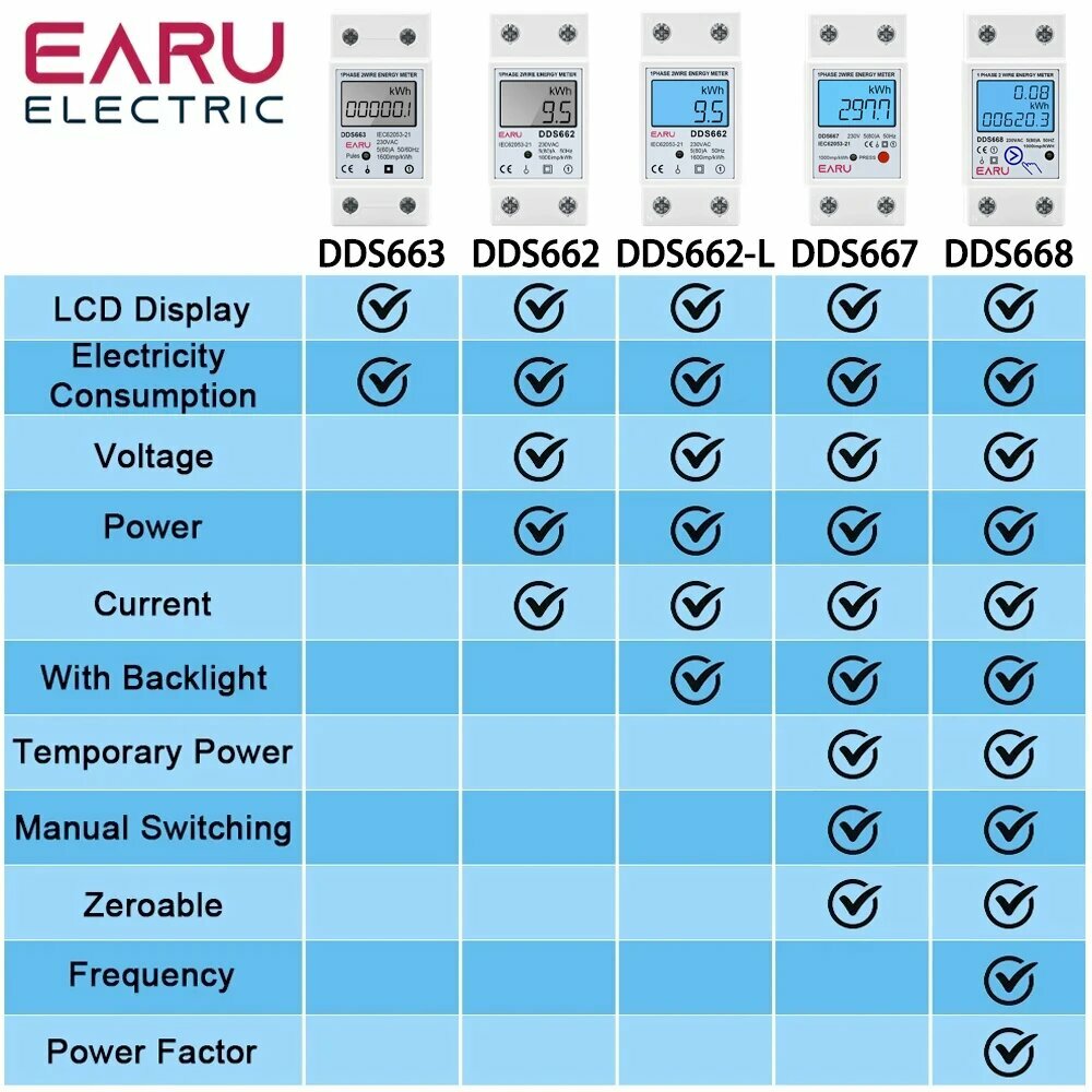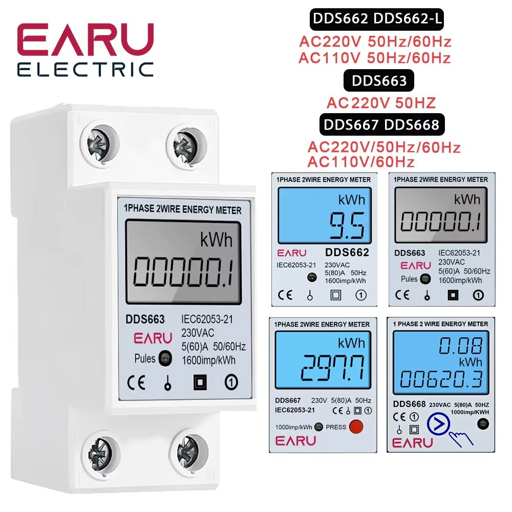 Однофазный электронный счетчик энергии EARUELECTRIC 60/80A, DDS662, AC110V 60Hz