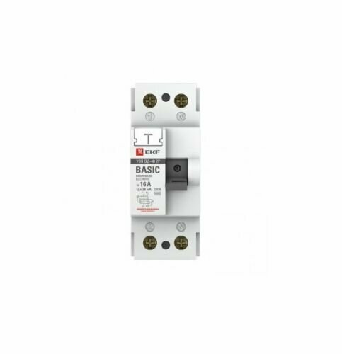 Устройство защитного отключения УЗО ВДТ-40 2P 16А- 30мА (электронное) EKF Basic.