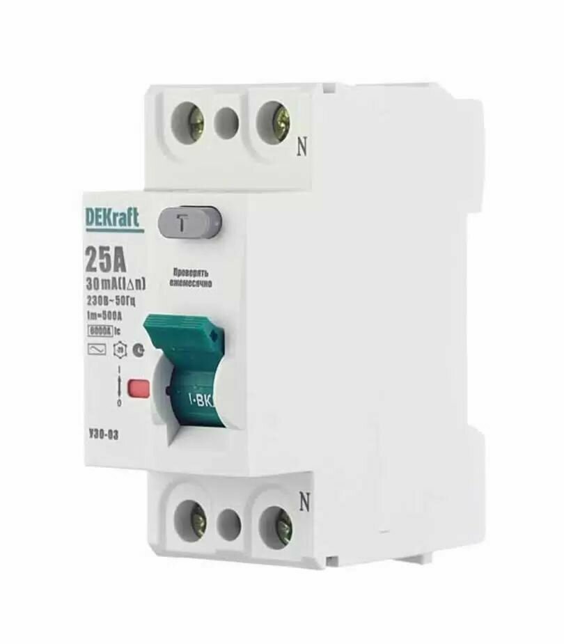| Дополнительная информация | Устройство защитного отключения DEKraft 2P 25А 30мА тип AC 6кА |