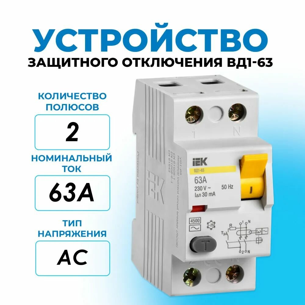 СохранитьУЗО IEK ВД1-63 2P 63А 30мА класс AC интересное: