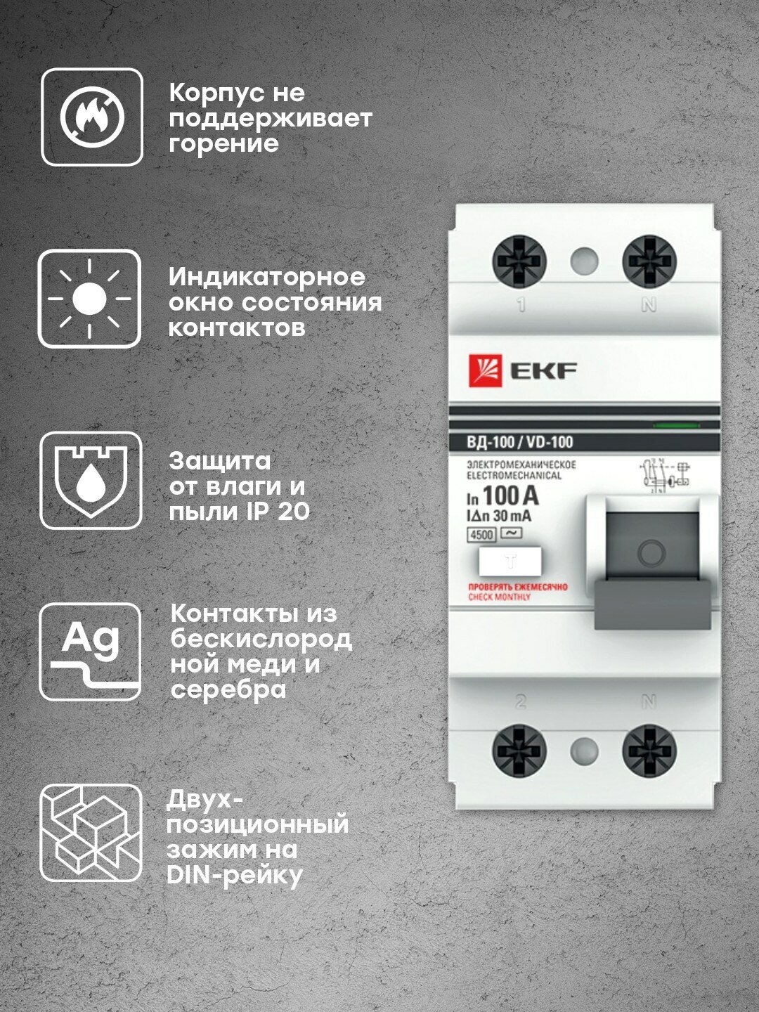 СохранитьУстройство защитного отключения УЗО ВД-100 2P 100А- 30мА (электромеханическое) EKF PROxima интересное:
