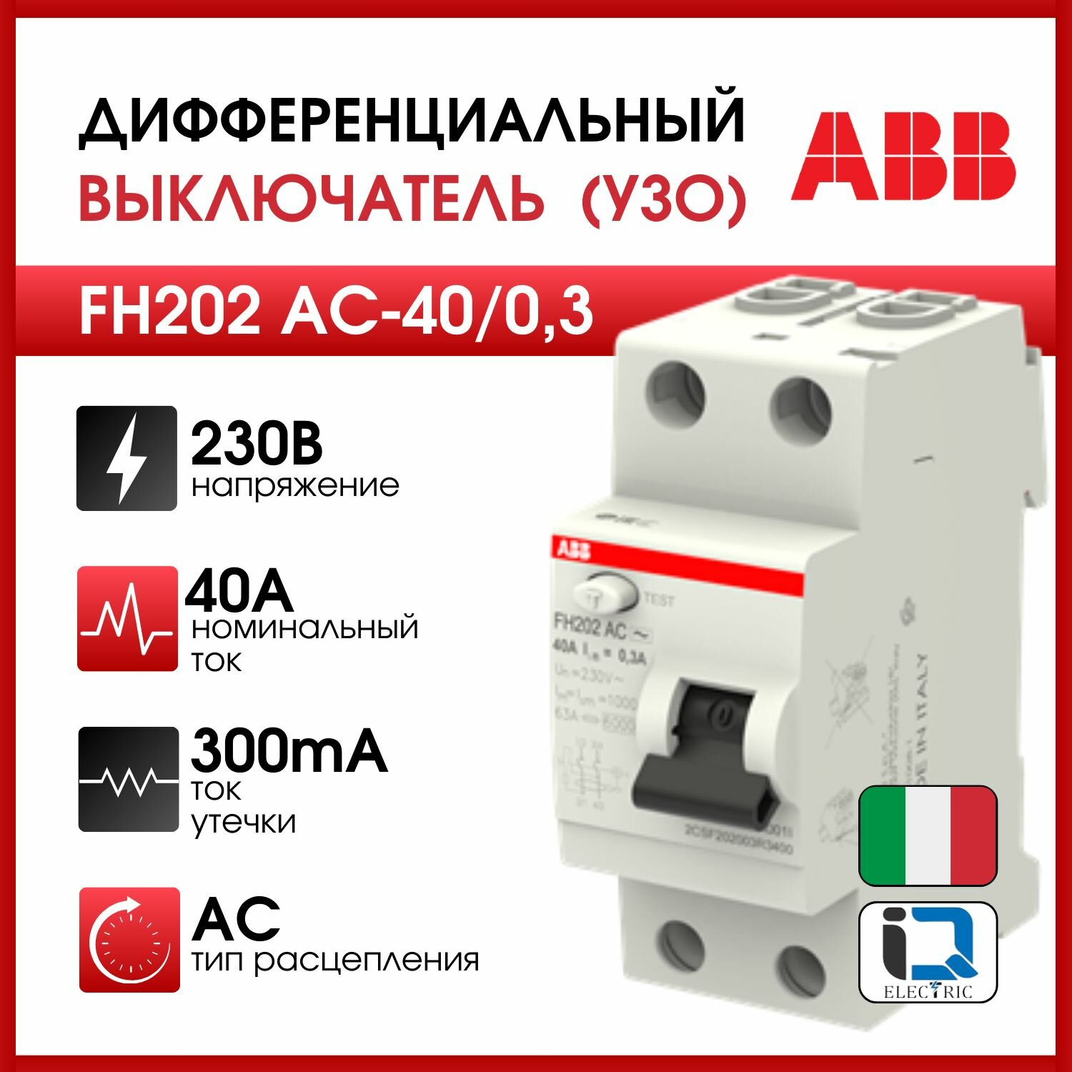 Купить Устройство защитного отключения (УЗО) ABB FH202 AC 40/0,3 mA, 40A 300mA
