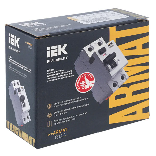 ARMAT Выключатель дифференциального тока R10N (УЗО) 2п 63А 30мА тип AC , IEK AR-R10N-2-063C030 (1 шт.)