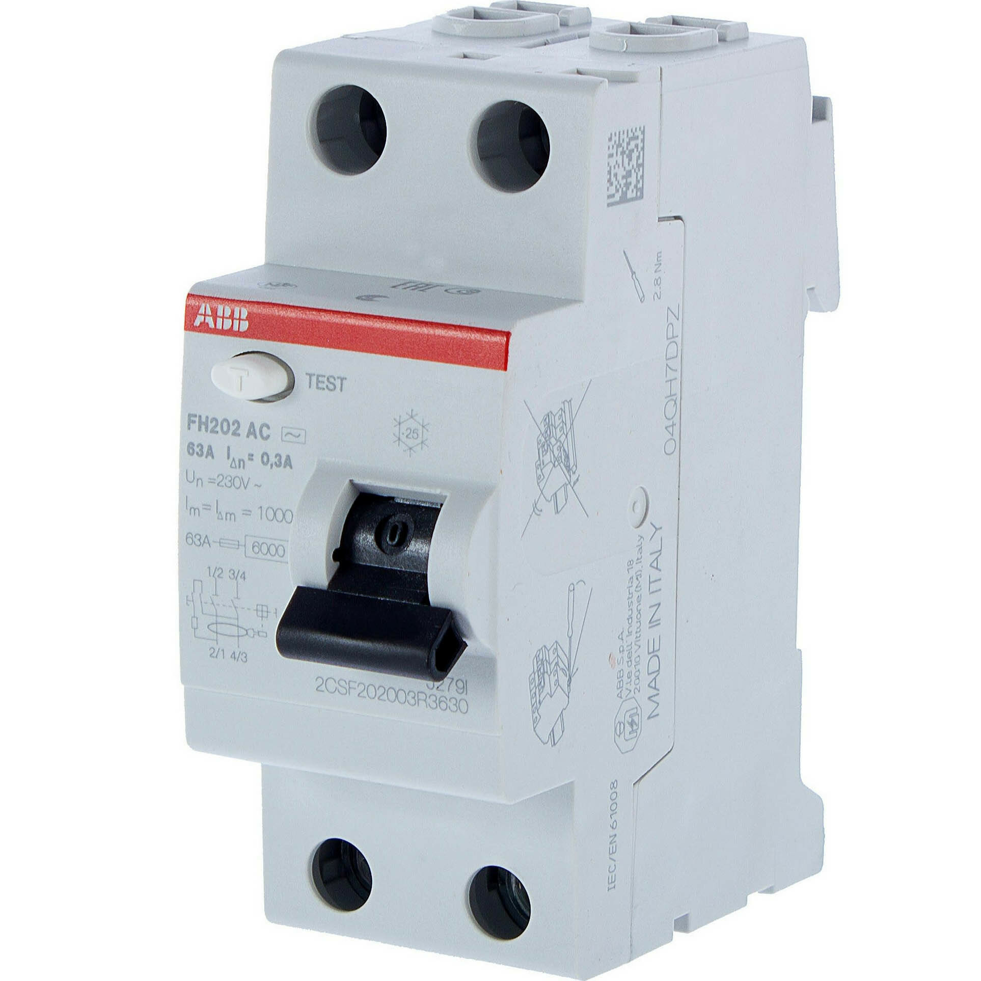 Автоматический выключатель остаточного тока УЗО ABB F202 AC-63/0.3 2P 300 мА 2CSF202001R3630