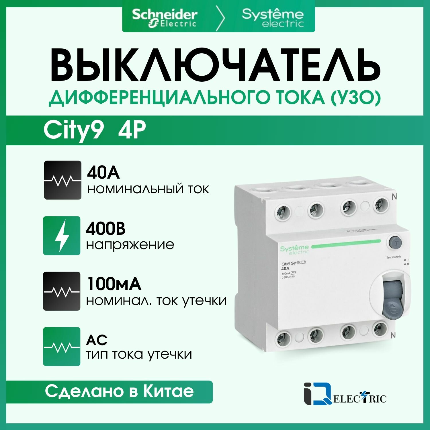 SE City9 Set Выключатель дифференциального тока (ВДТ) 40А 4P 100мА Тип-AC 400В