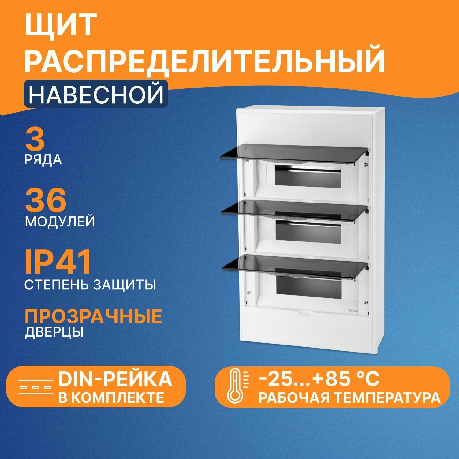 Бокс пластиковый, ударопрочный и термоустойчивый Kranz ЩРН-П-36, IP41, до 400 В