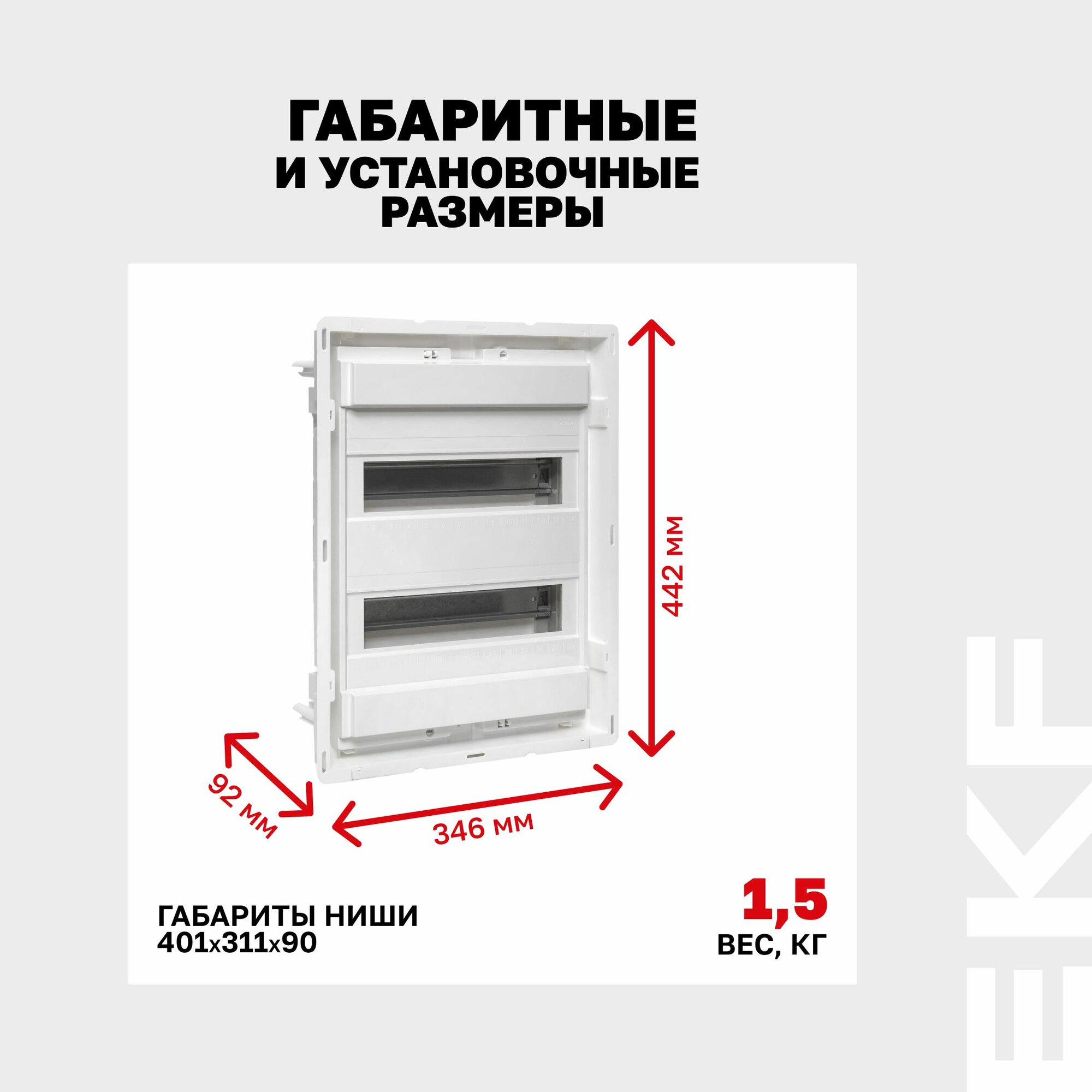 Основание силового щита EKF "Nova", 24 модуля, 2 ряда, 2 DIN-рейки, IP41, 2 габарит, щиток электрический встраиваемый (Дверь приобретается отдельно)
