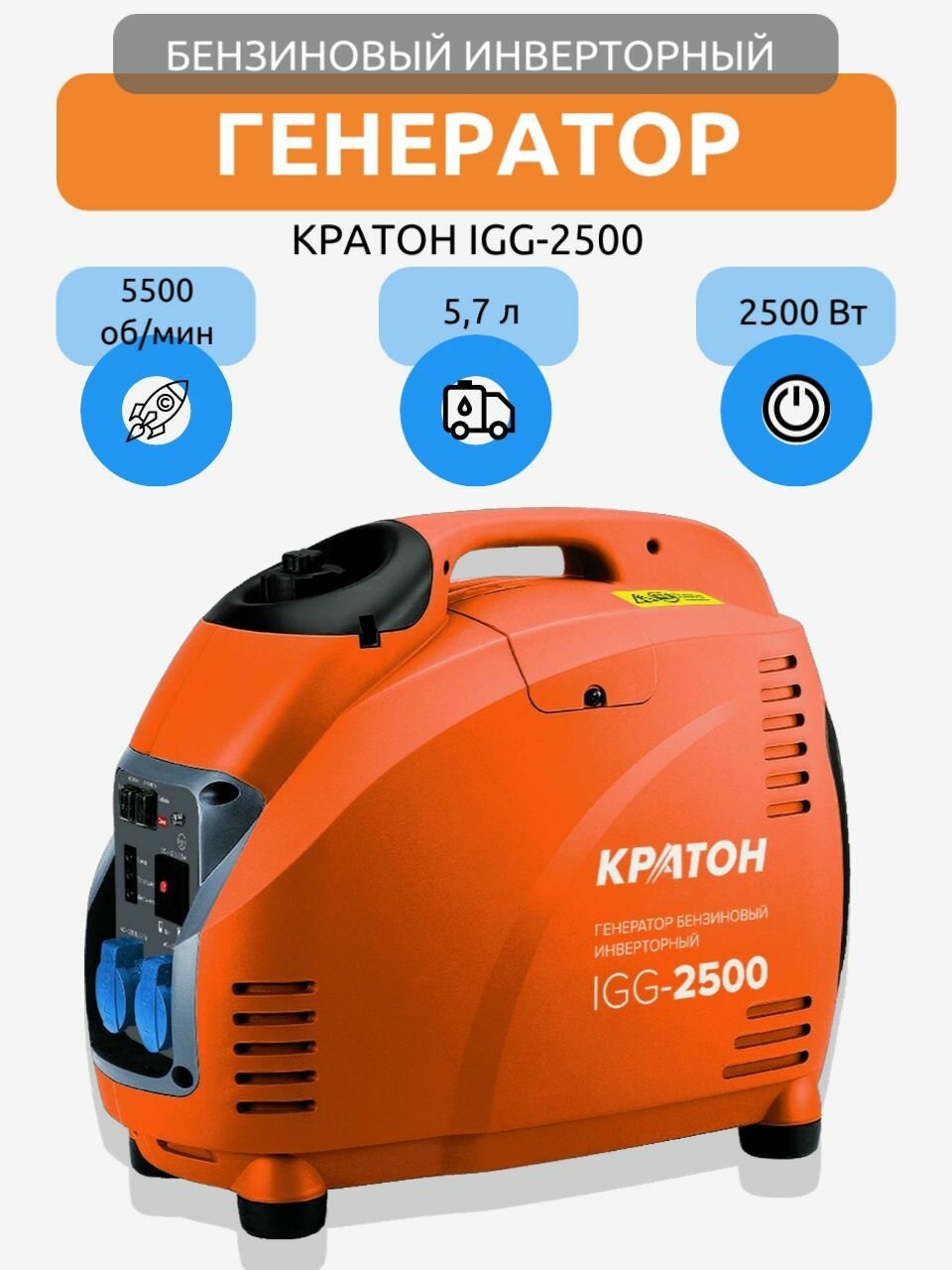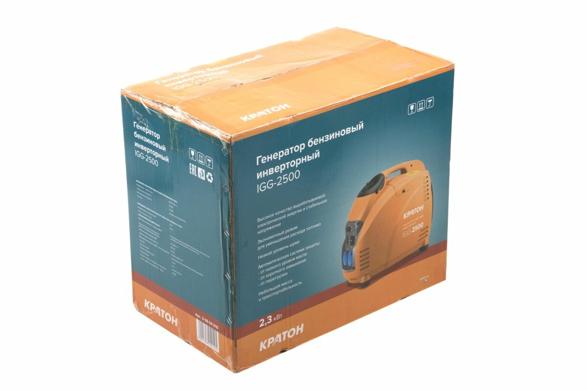 Генератор бензиновый четырёхтактный инверторный для дома Кратон IGG-2500, 2.3 кВт, 220В, 5.7 л, 2 розетки, ручной стартер интересное: