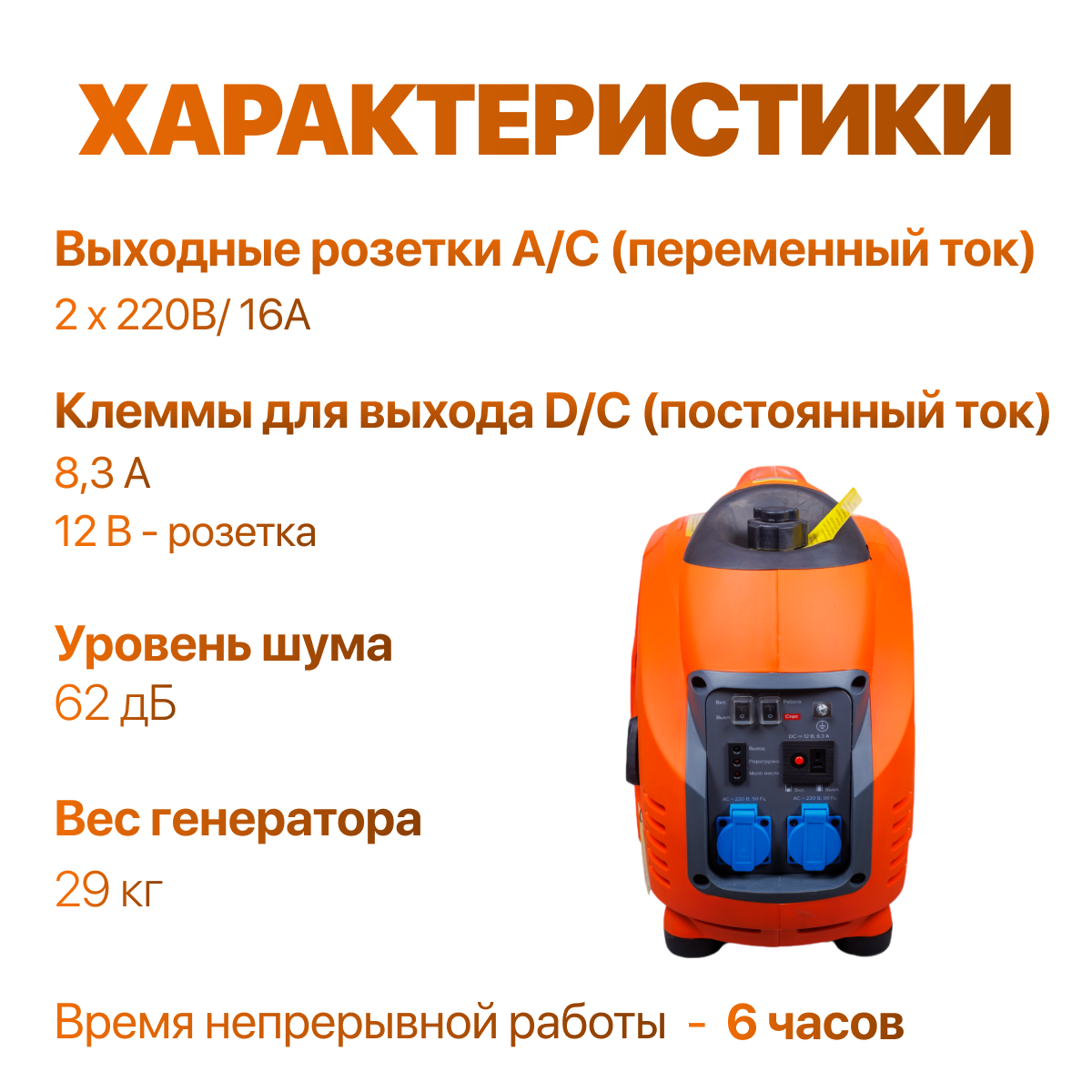 | Дополнительная информация | Автоматическая стабилизация напряжения, Рукоятка для переноски |