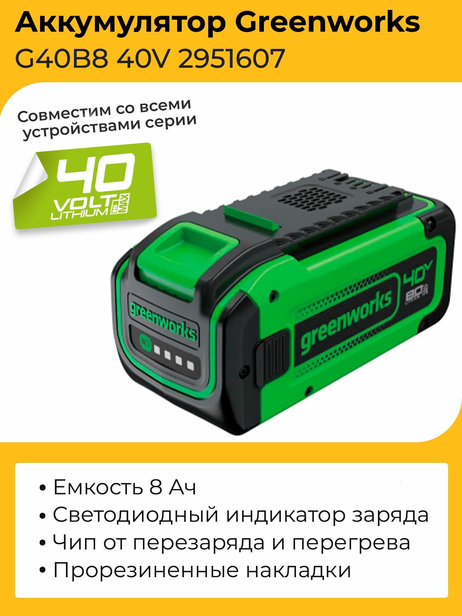 Батарея аккумуляторная GREENWORKS G40B8, 40В, 8Ач, Li-Ion [2951607]