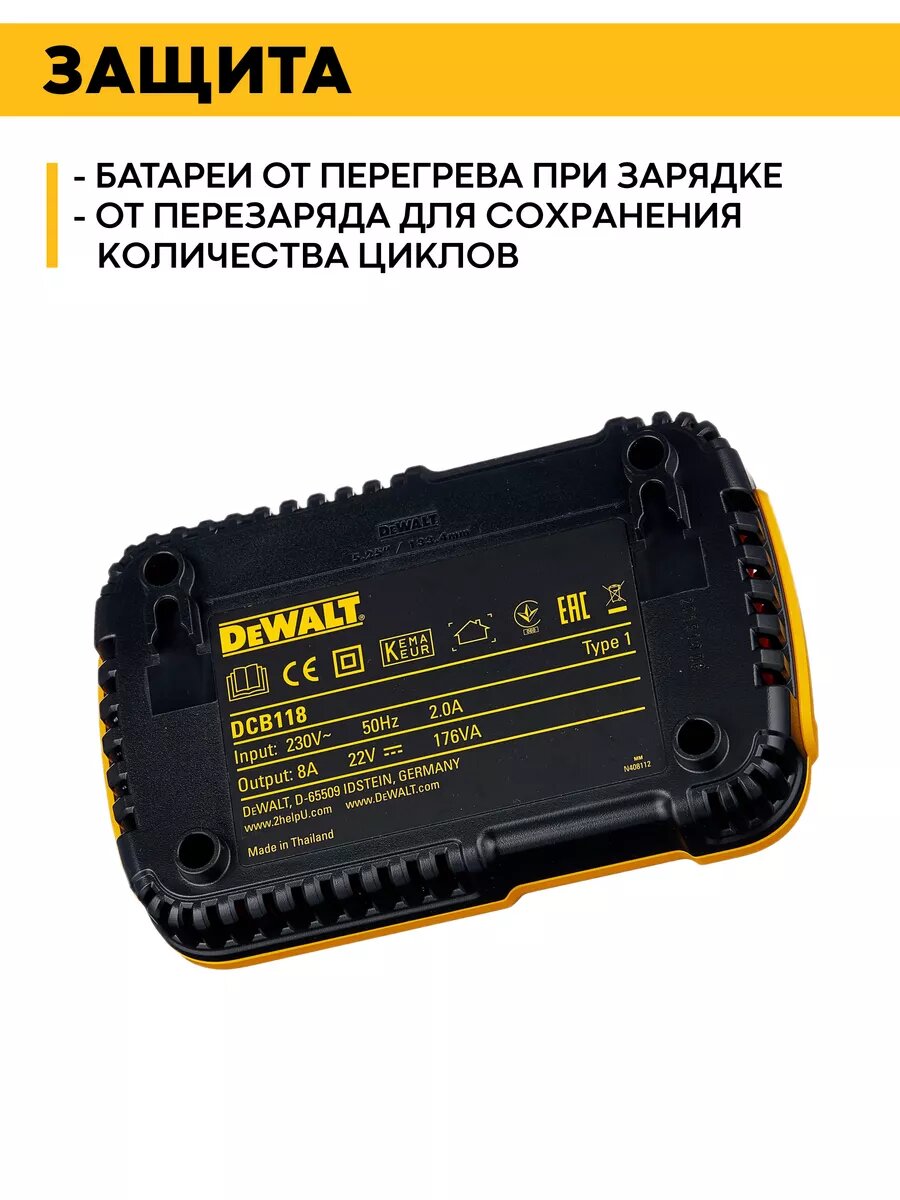 Зарядное устройство аккумулятора DCB118 для DeWalt 18V 8A Li-ion интересное: