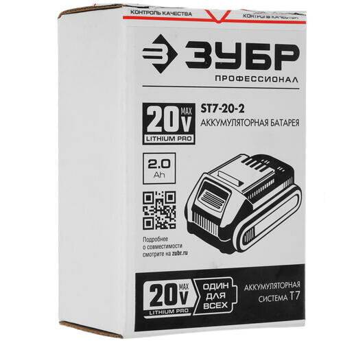 Купить Батарея аккумуляторная ЗУБР Профессионал ST7-20-2 (20 В, 2,0 Ач, тип T7, Li-Ion)