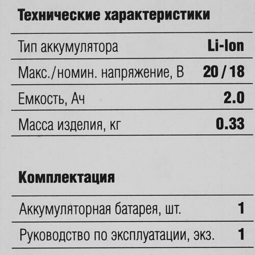 Аккумуляторная батарея ЗУБР 18В 2 Ач Li-Ion тип С1 (АКБ-С1-18-2)