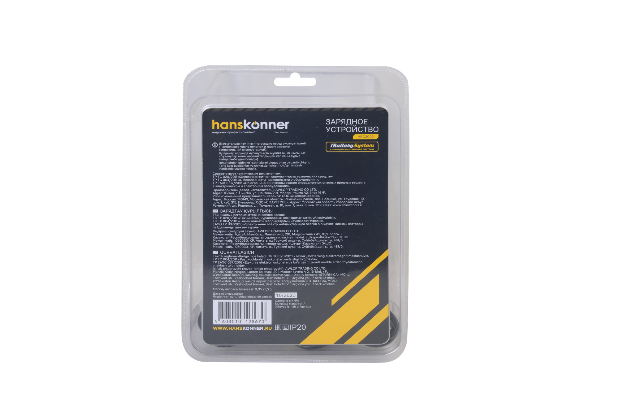HBC2002 зарядное устройство Hanskonner, 18В, 1BatterySystem, 2.3A