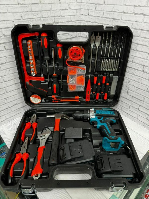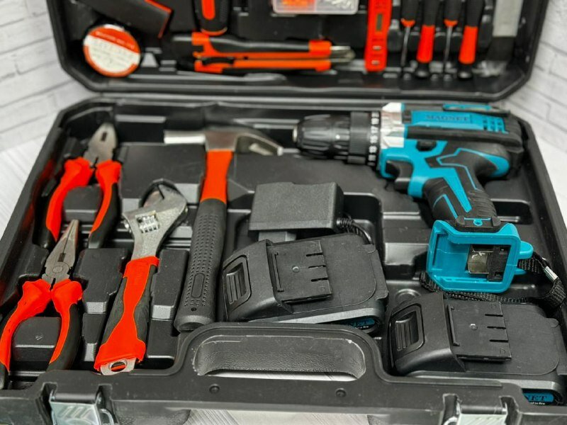Купить Шуруповерт аккумуляторный, строительный, дрель-шуруповерт 2 АКБ, набор инструментов в кейсе