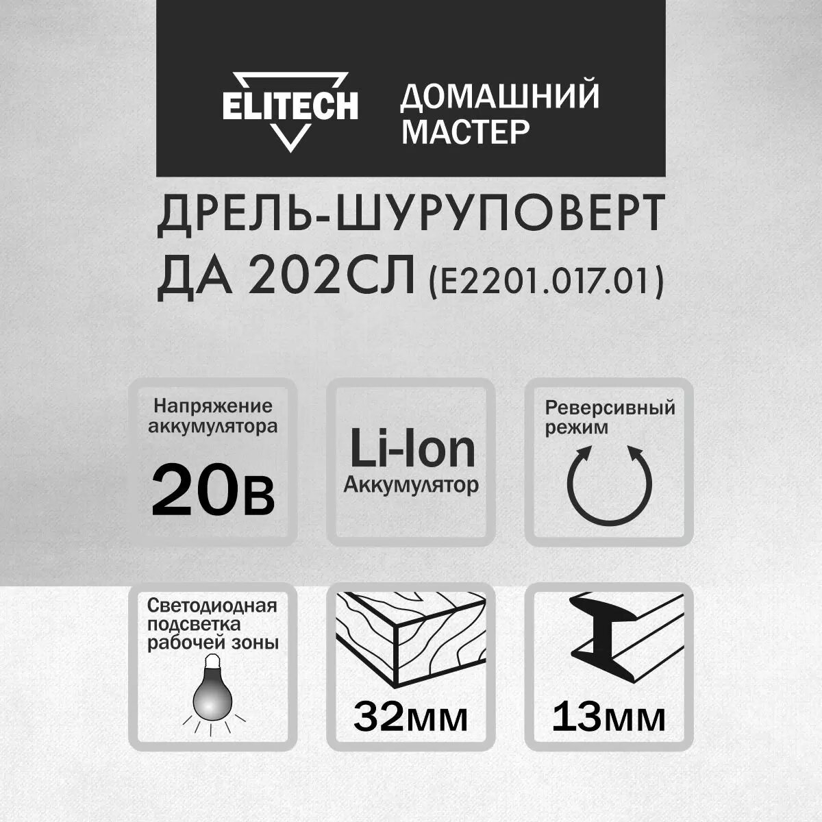 Аккумуляторная дрель-шуруповерт ELITECH ДМ ДА202СЛ(E2201.017.01)
