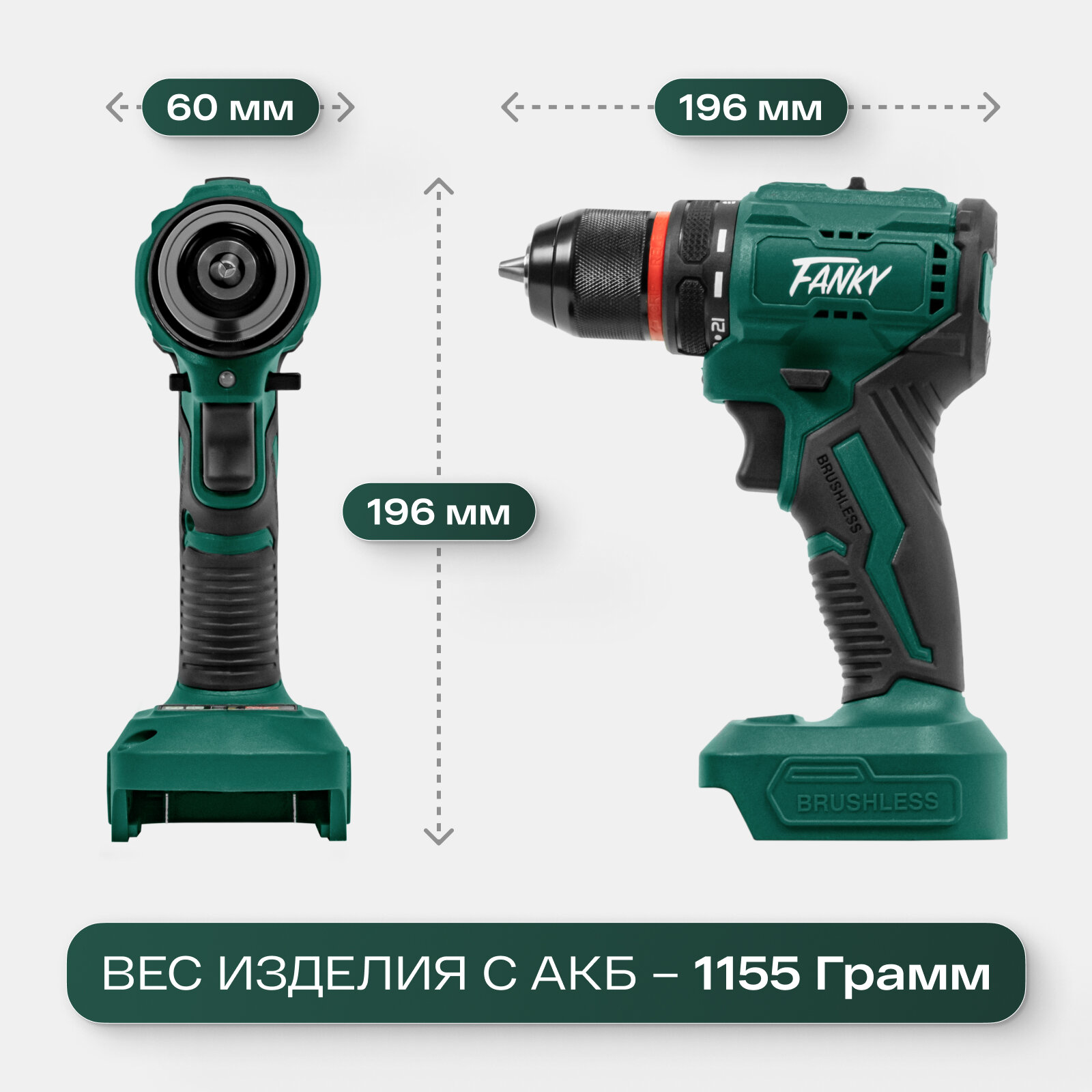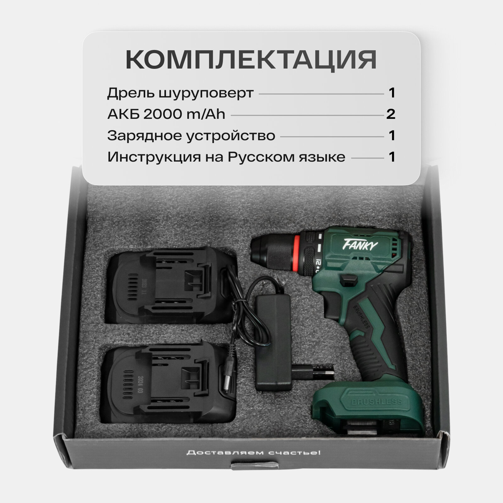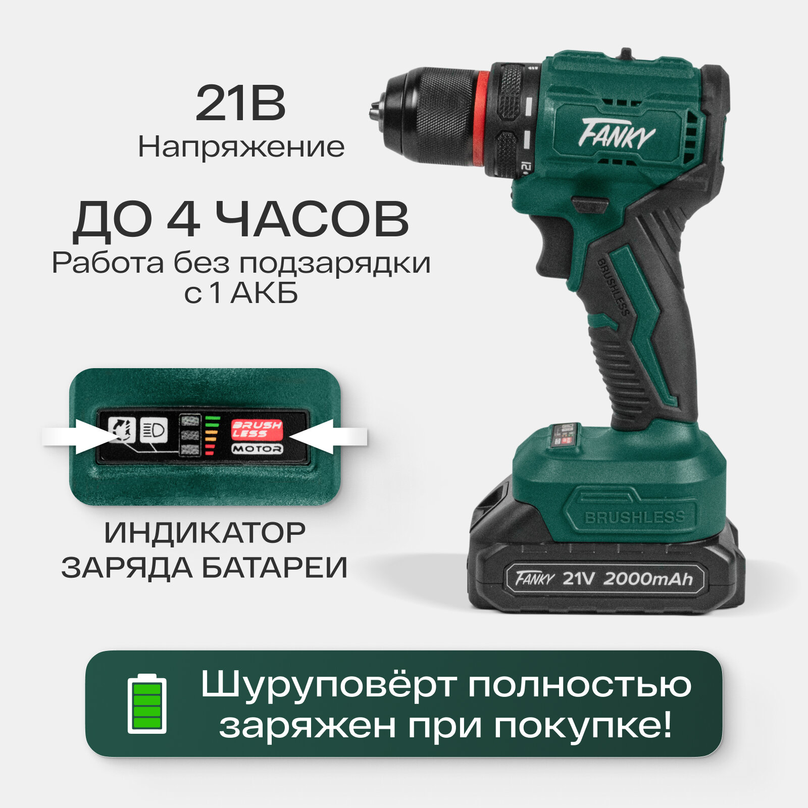 Шуруповерт аккумуляторный бесщеточный Fanky 2 АКБ дрель мощная 21В интересное: