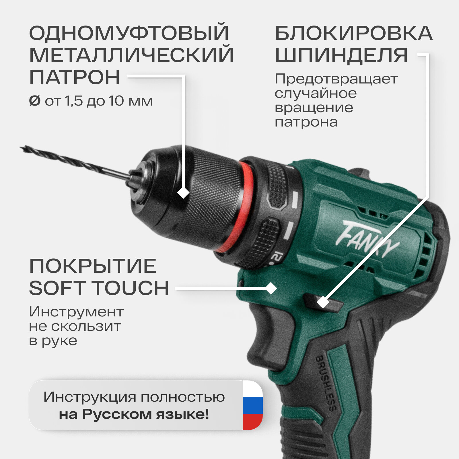 Шуруповерт аккумуляторный бесщеточный Fanky 1 АКБ дрель мощная 21В