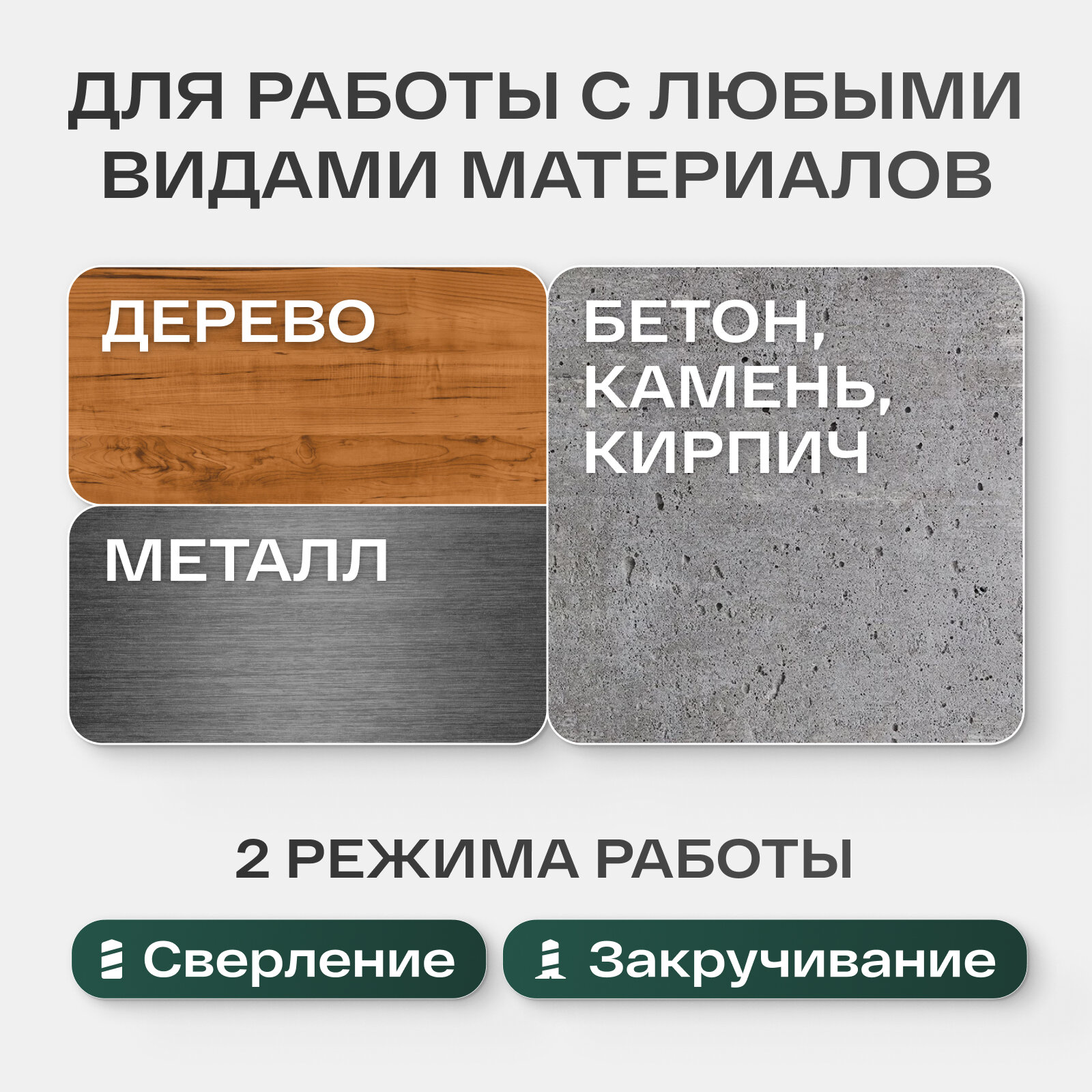 | Дополнительные режимы работы | сверление |