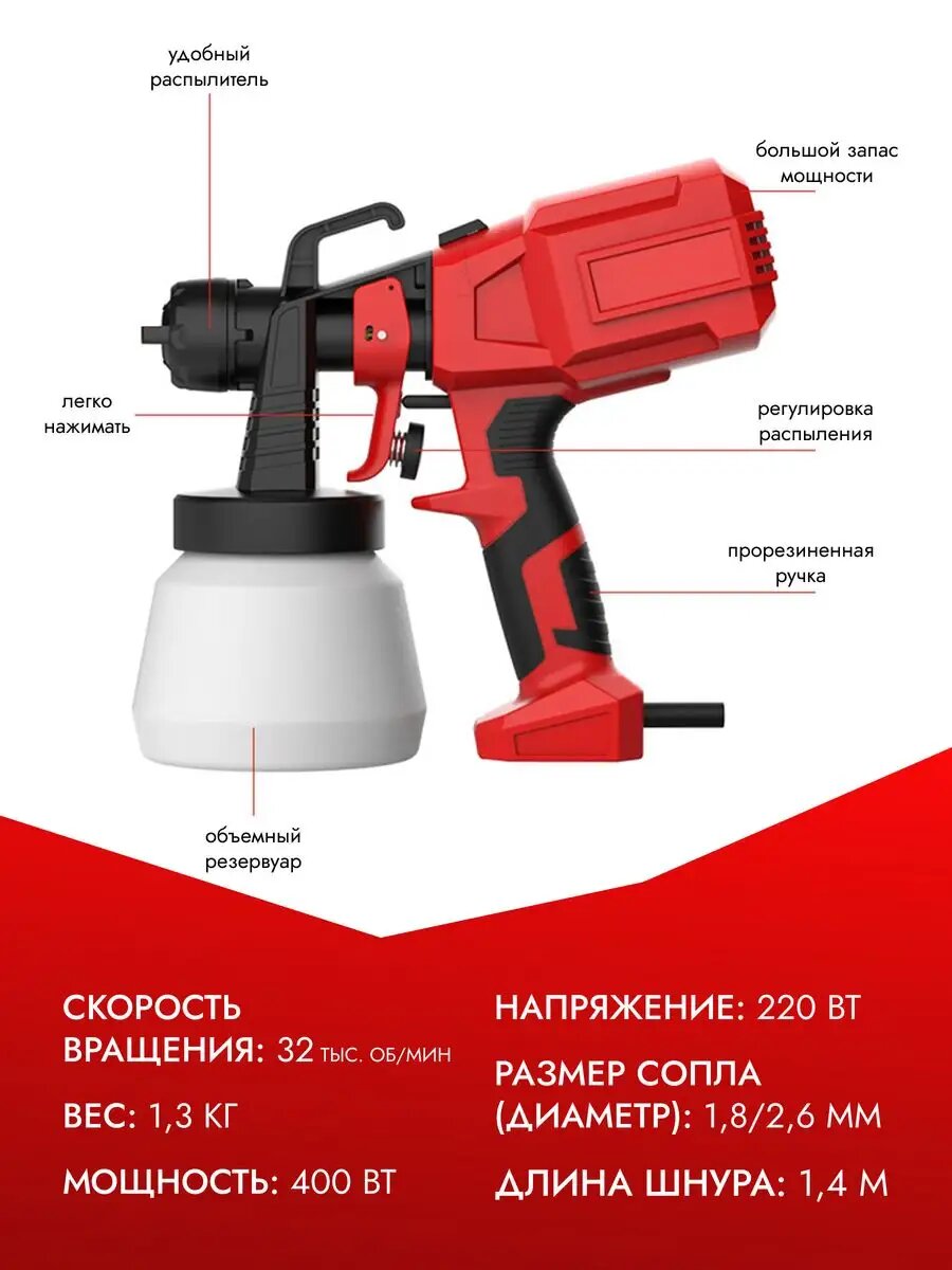 Краскопульт электрический Spray Gun для краски объемом 0,8 литра интересное: