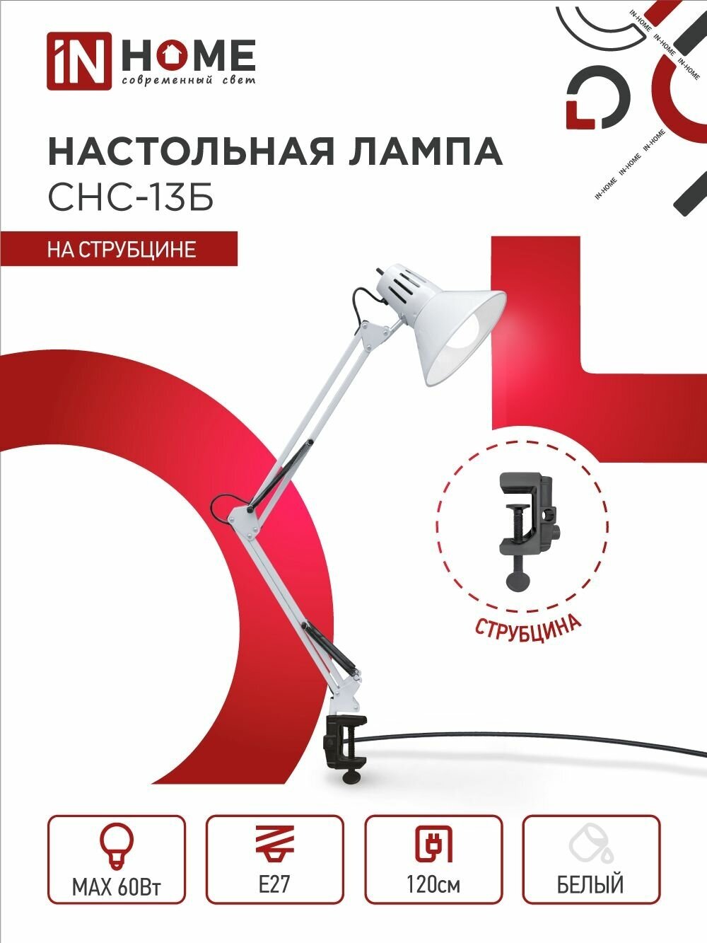 Лампа офисная IN HOME СНС-13Б, E27, 60 Вт, белый 4690612012728