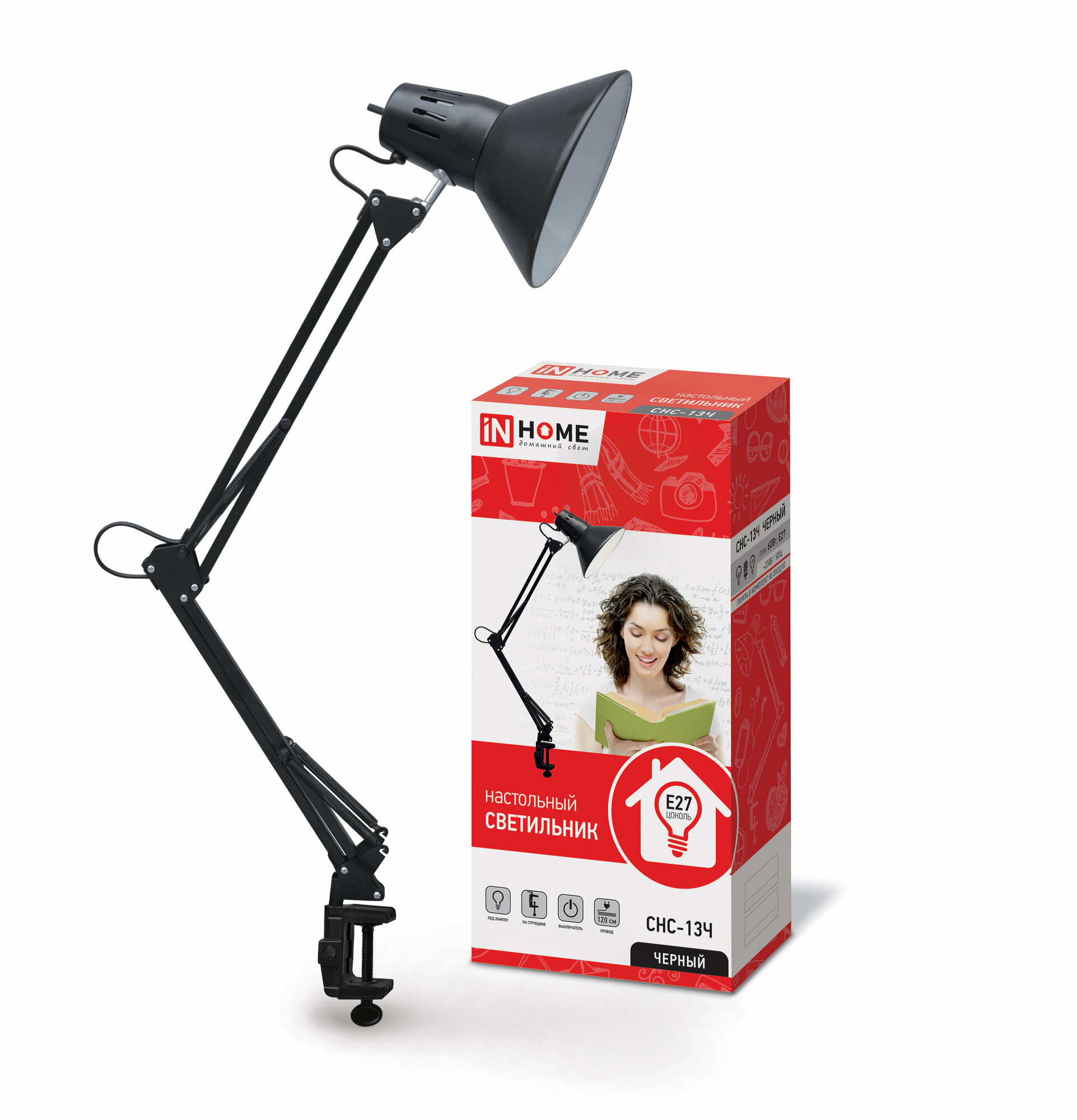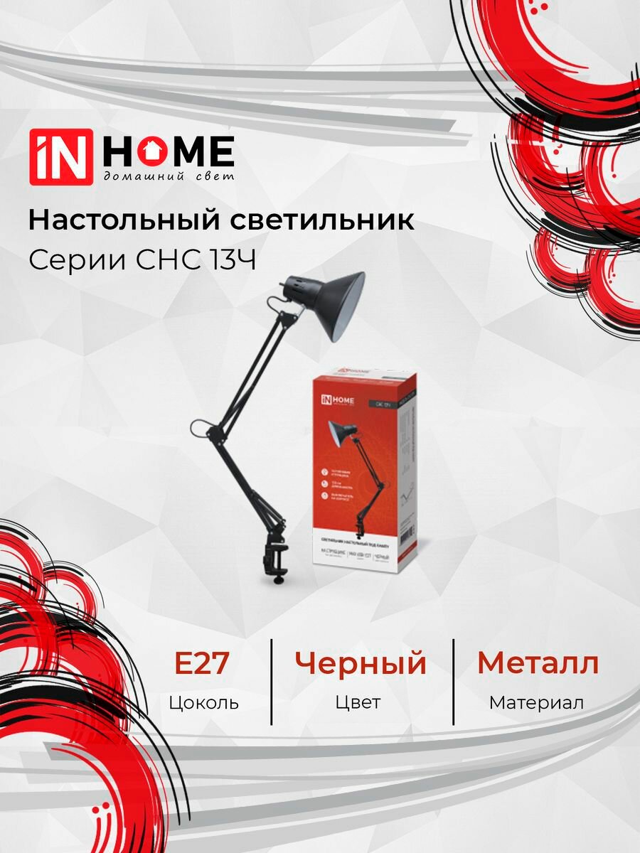 Купить Светильник настольный под лампу СНС-13Ч на струбцине 60Вт E27 черн. (коробка) IN HOME 4690612012735 ( 1шт. )