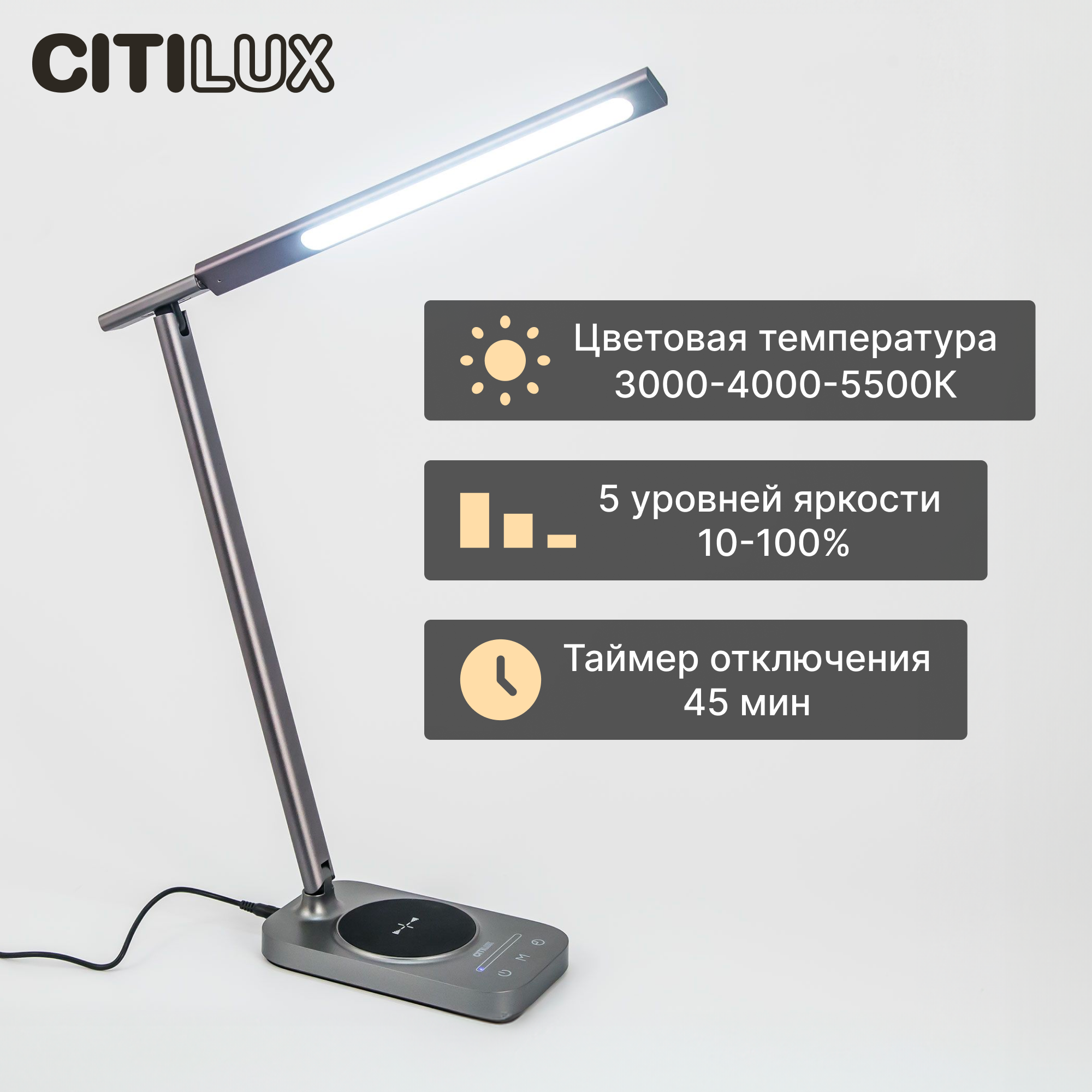 Настольный светильник светодиодный USB+Qi Citilux Ньютон CL803052 серый интересное: