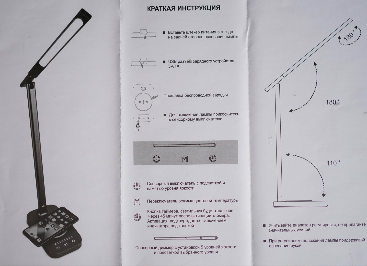 | Дополнительная информация | цветовая температура, К: 3000-4000; беспроводное зарядное устройство для смартфонов, USB зарядное устройство, таймером отключения лампы |