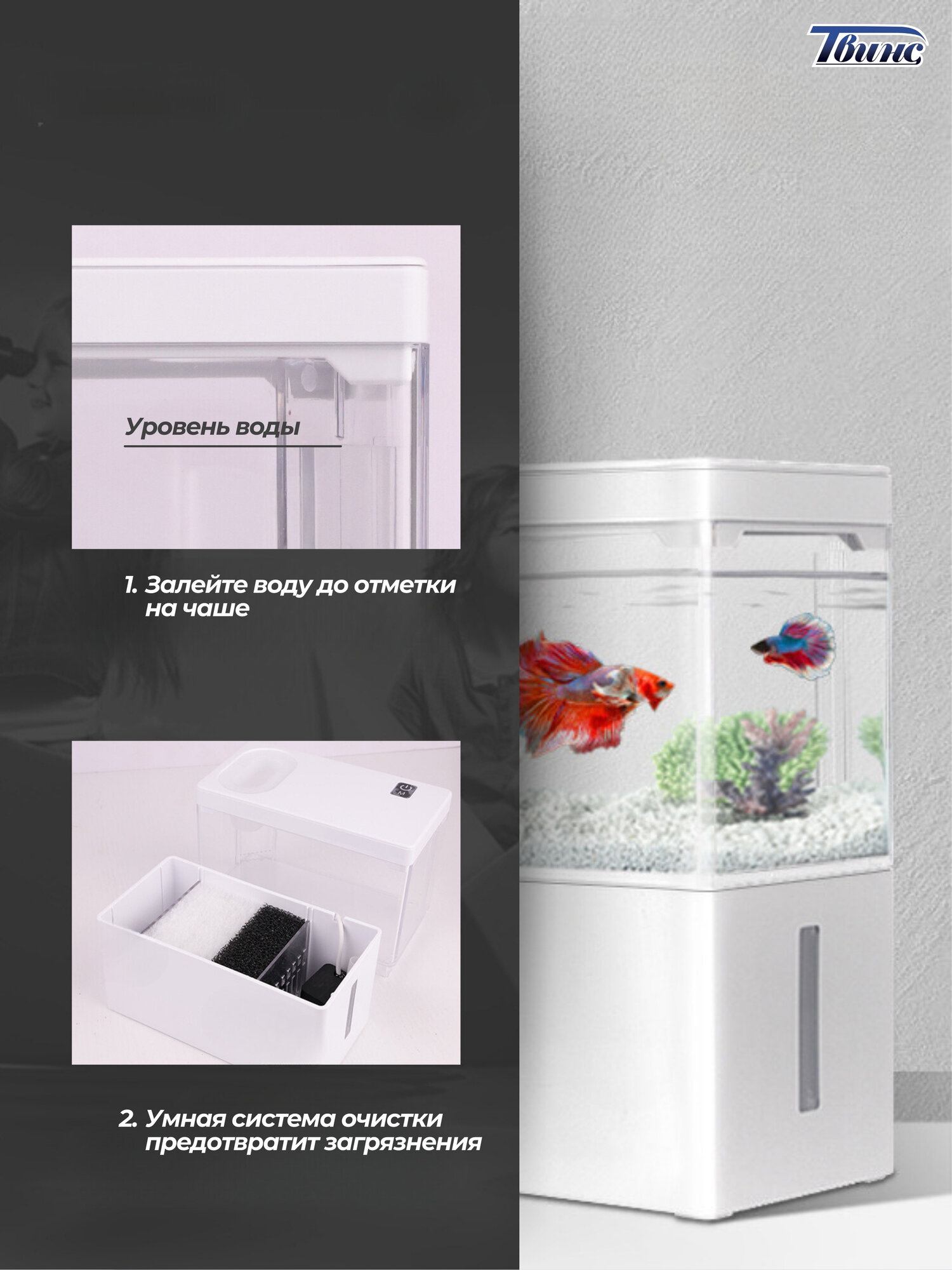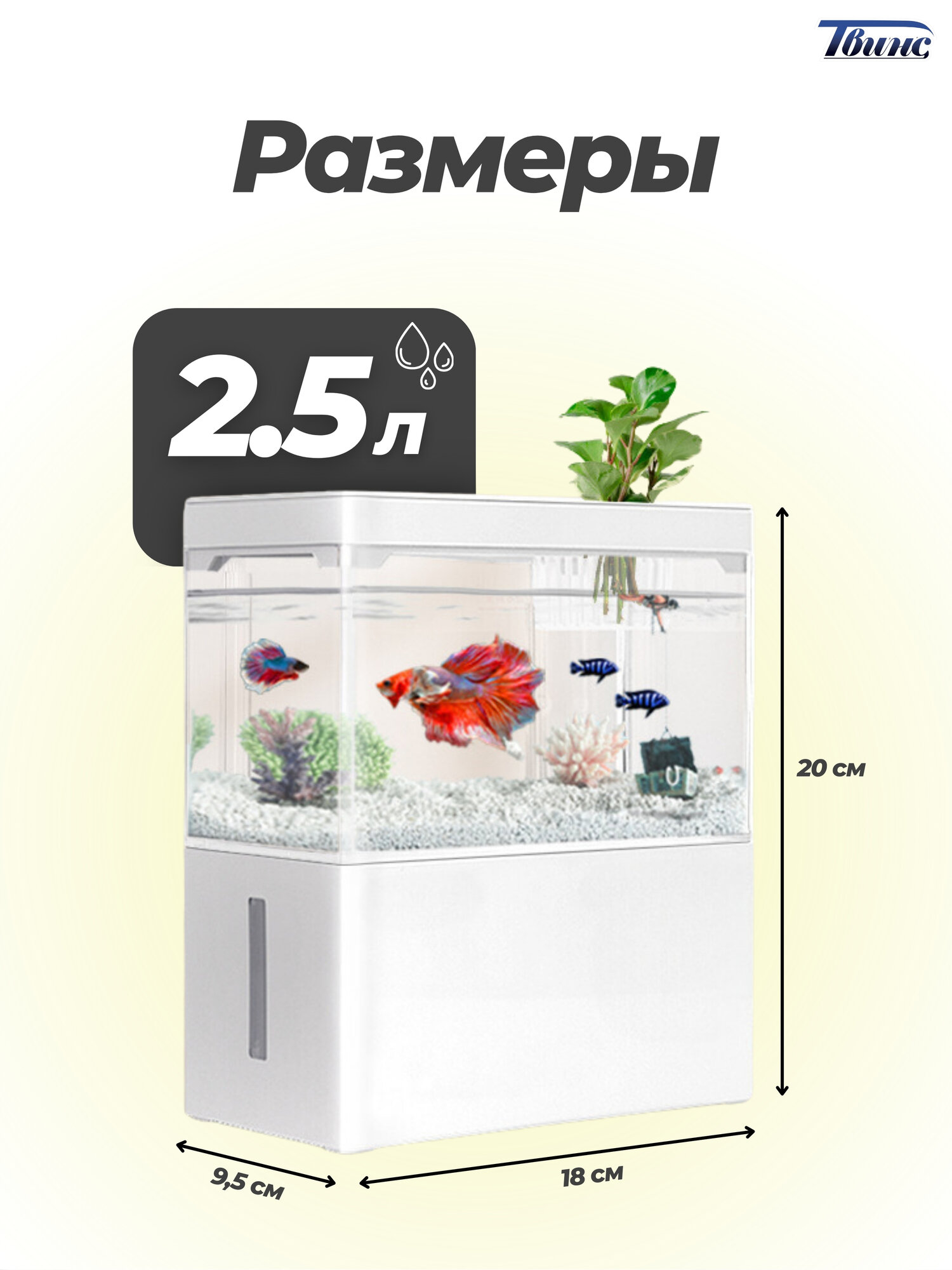 Мини-аквариум JINGYE с фильтром и подсветкой, 2 литра, белый, прямоугольный, 22х18х10 интересное: