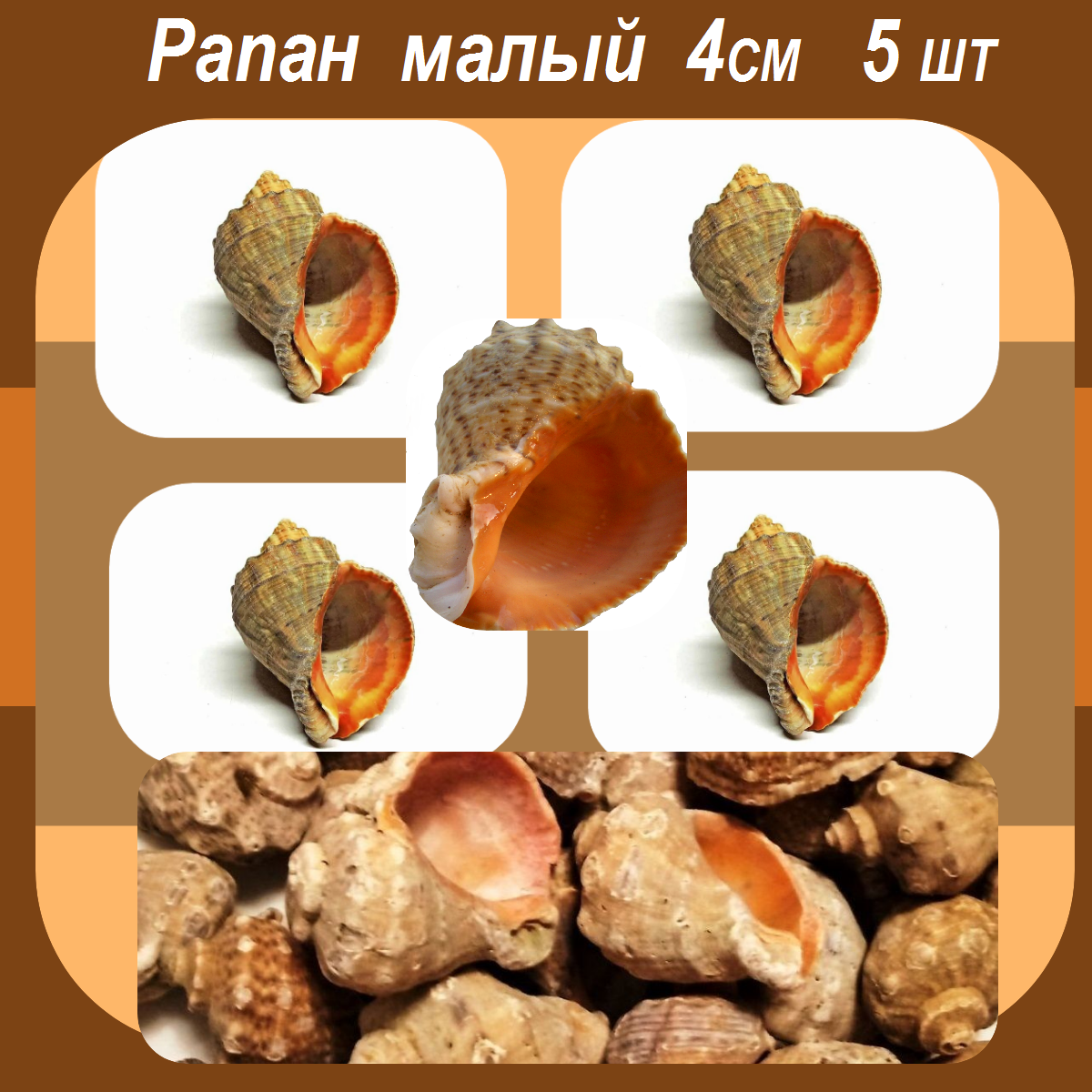 Ракушки морские для аквариума рапан средний 6 см 5 штук