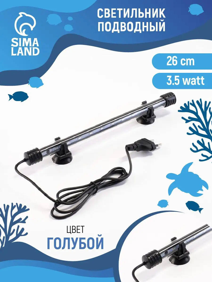 Светильник подводный с переключателем, 26 см, 3.5 Вт, голубой