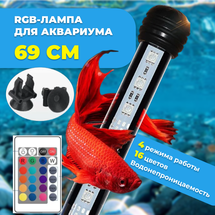 RGB-лампа для аквариума, 69 см, с пультом управления интересное: