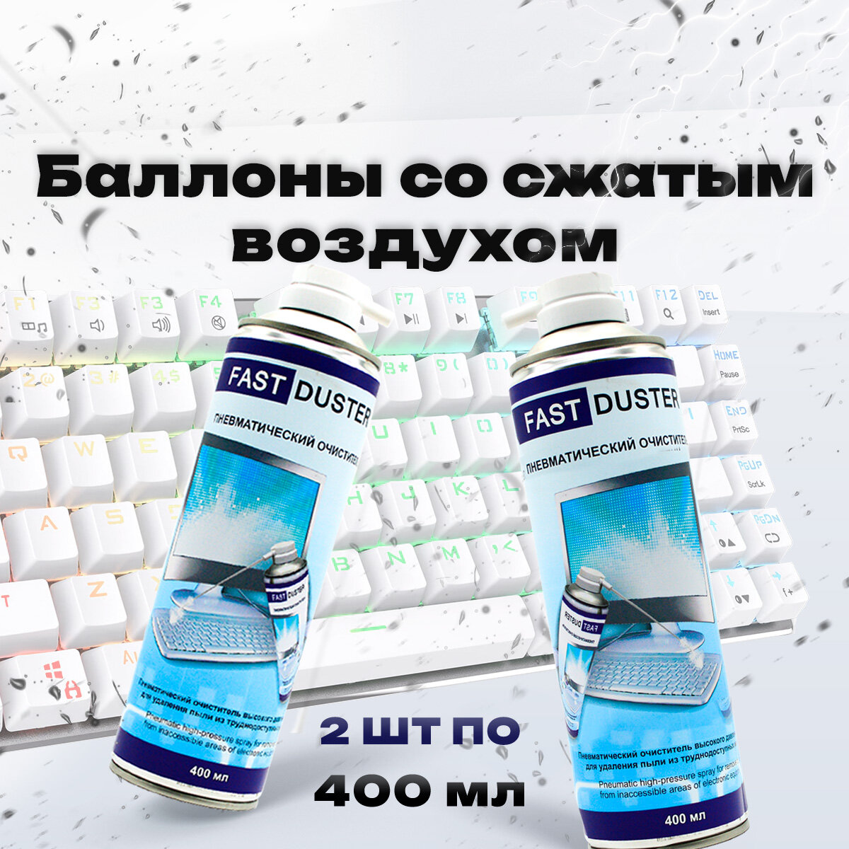 Сжатый воздух для чистки пк от пыли, пневматический очиститель Fast Duster для ухода за компьютерной техникой, ноутбука, клавиатуры, оргтехники, 400мл