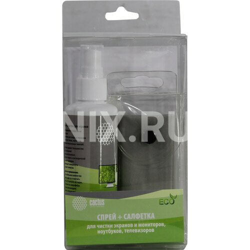 Чистящий набор (салфетки + спрей) Cactus Cs-s3001e для экранов и оптики 1шт 18x18см 100мл .