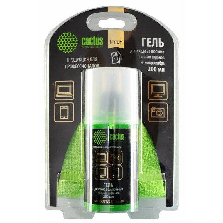Чистящее средство Cactus Чистящее средство чистящий комплект (гель + салфетка) Cactus CS-S3004E для экранов и оптики (200мл) (ret)