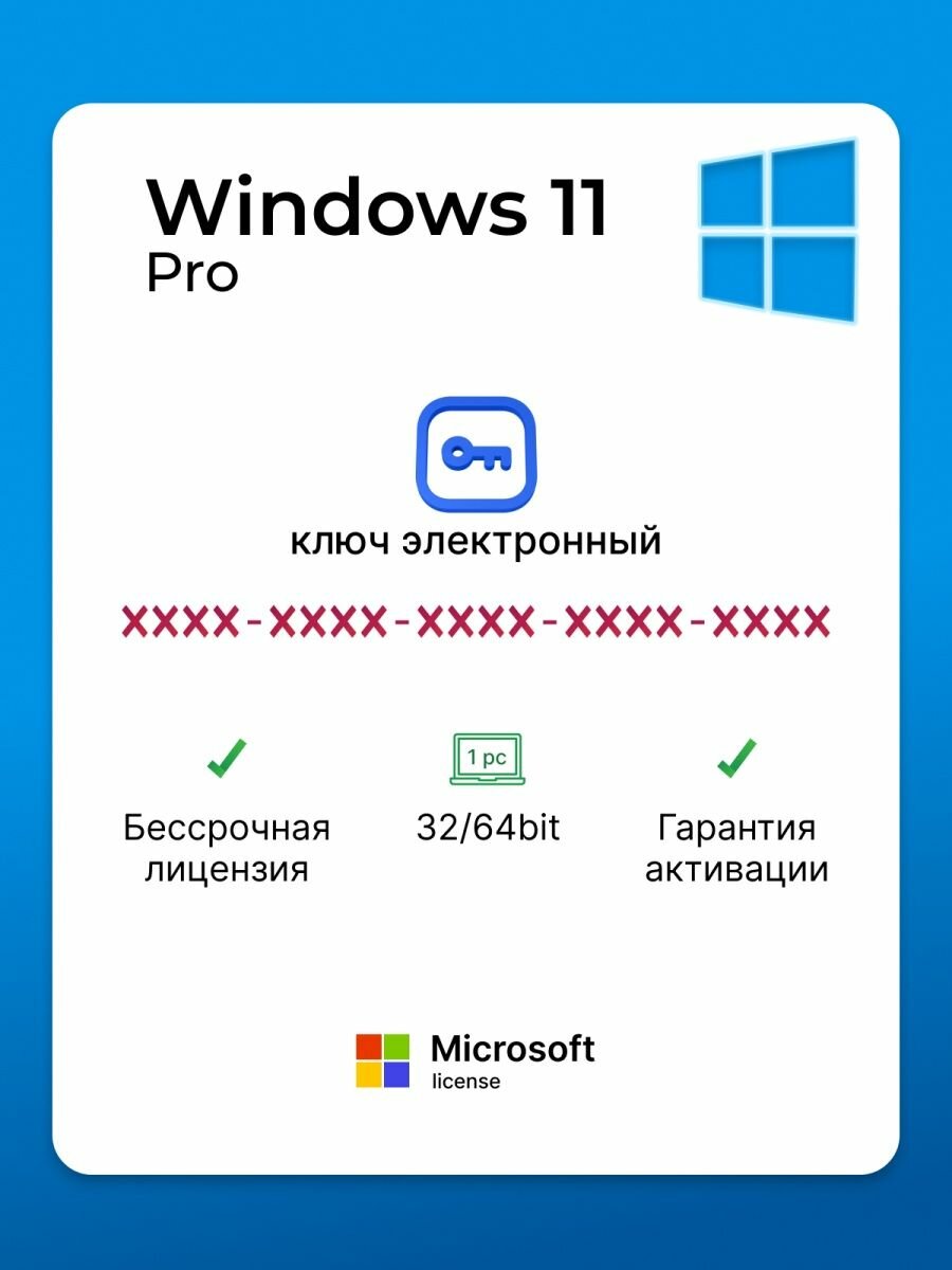 Ключ активации Windows 11 PRO ключ Microsoft, Русский язык, Бессрочная лицензия (Привязка к железу ПК)