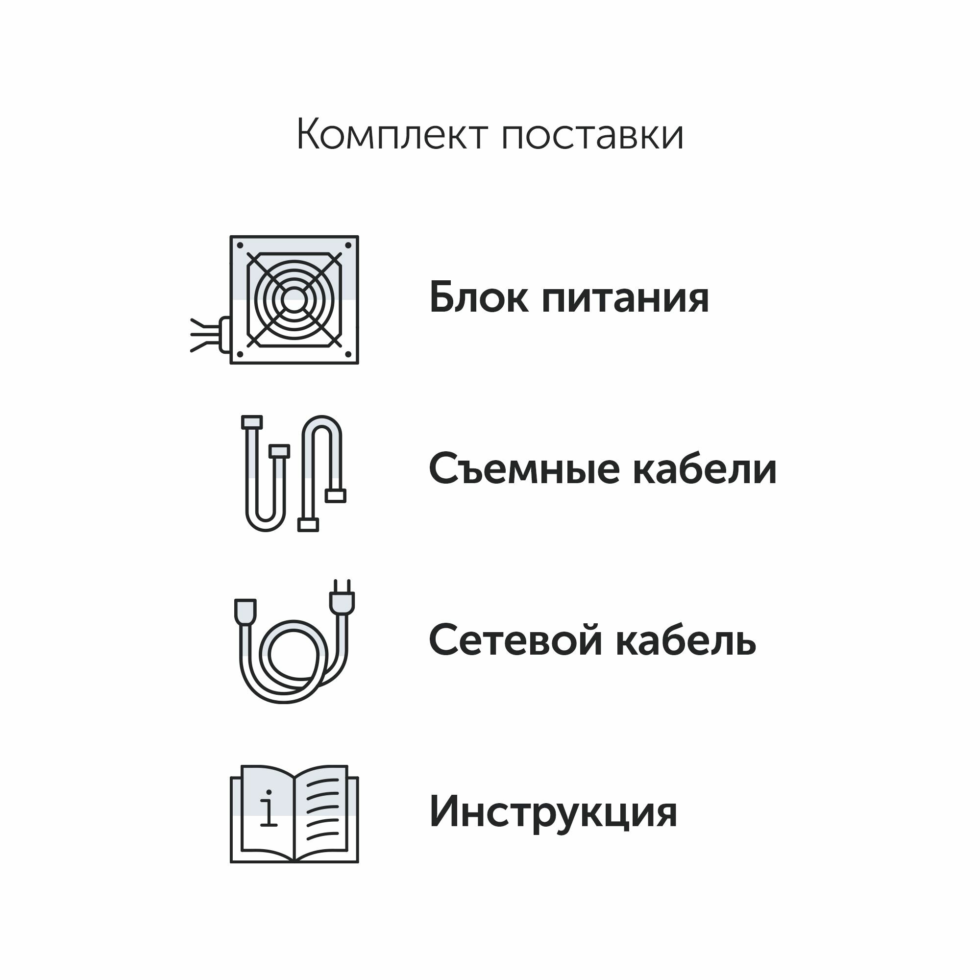 | Подробная комплектация | Блок питания - 1, кабель питания - 1, коробка - 1, сьёмные кабели: Разъем питания материнской платы - 1; Разъем питания процессора - 2; Разъем питания видеокарты (PCI-E) - 2; Разъемы 15-pin SATA - 6; Разъемы 4-pin Molex - 4. |