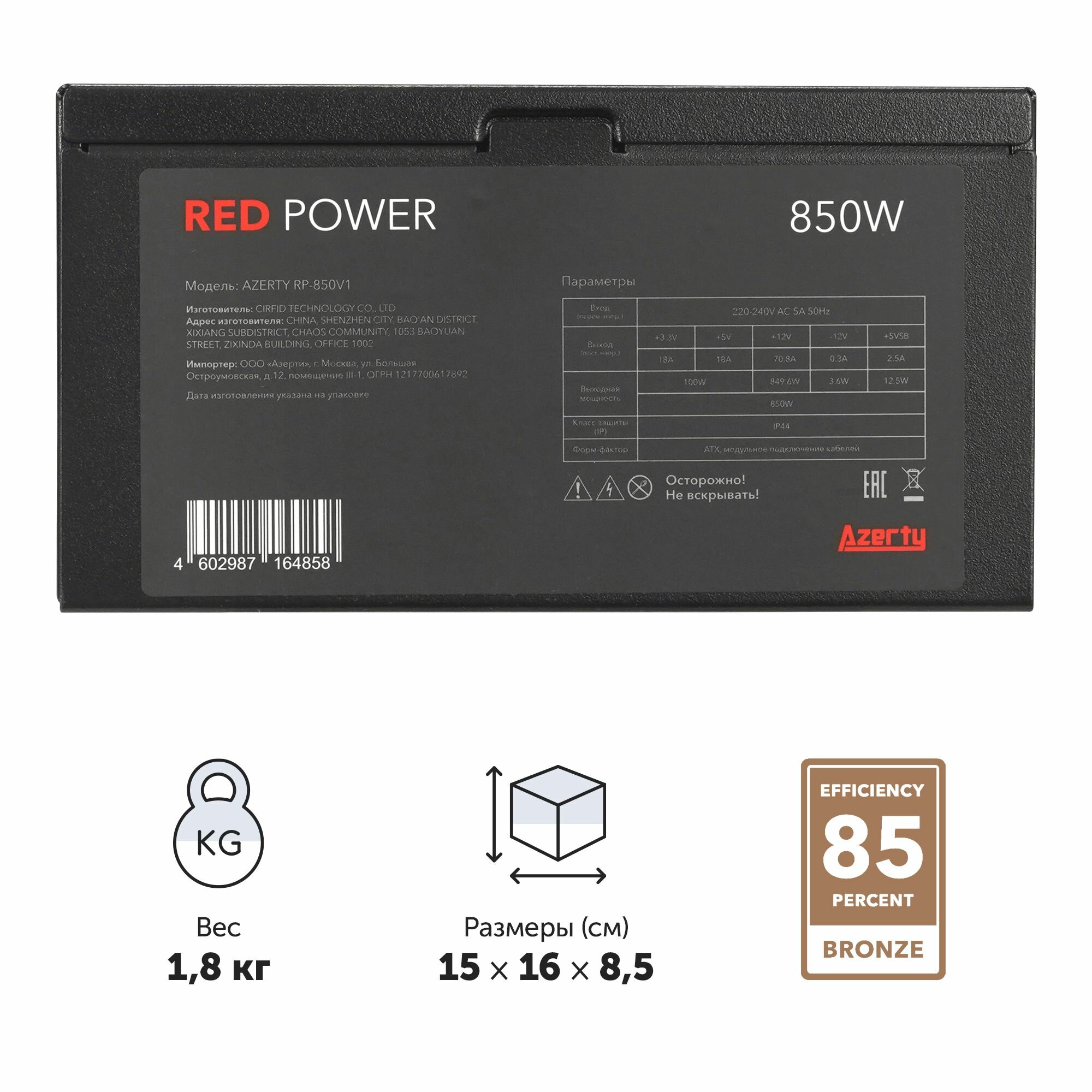 Блок питания компьютера Azerty RP-850V1 интересное:
