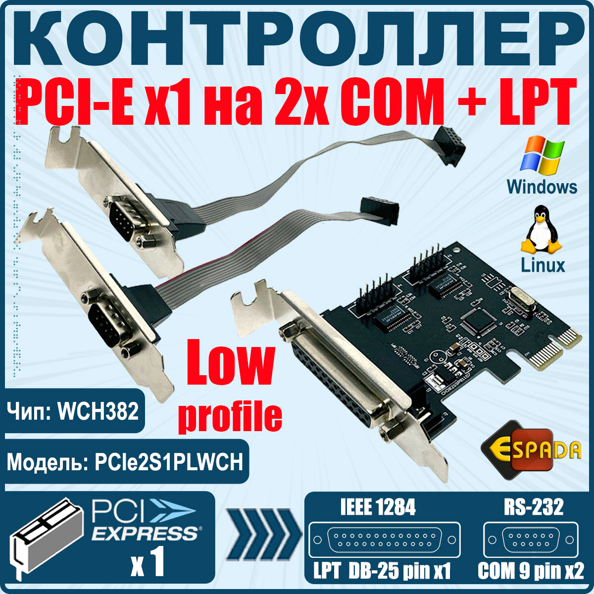 Контроллер PCI-E x1 на 2x COM (RS-232) + LPT, WCH382, модель PCIe2S1PLWCH Espada, low profile интересное: