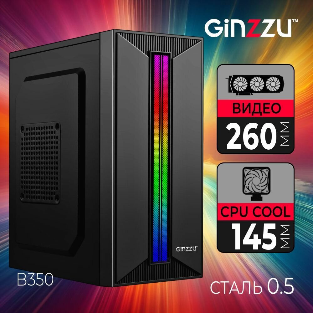 Купить Корпус для ПК Ginzzu B350, Mini Tower, RGB подсветка передней панели, без БП, 2xUSB 2.0, AU, черный