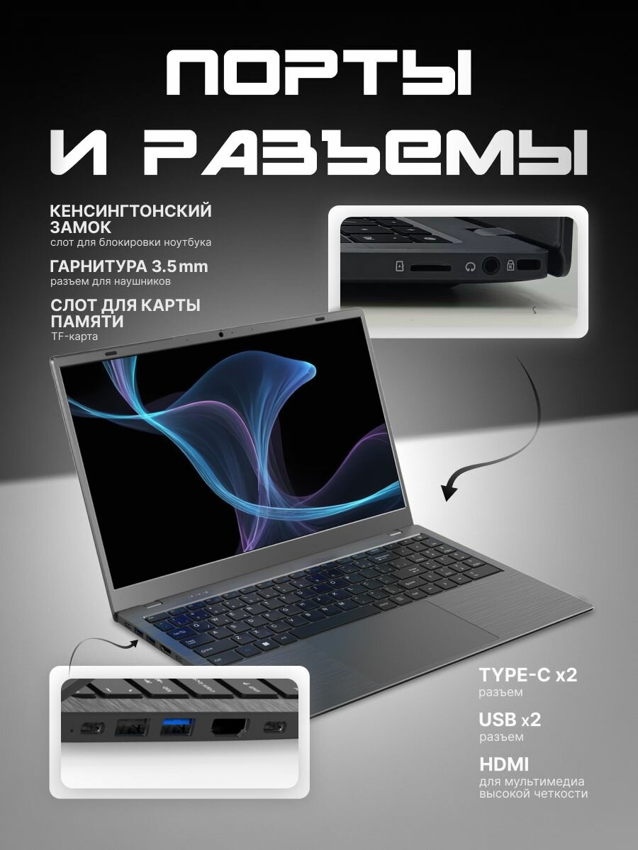 Ноутбук 15,6" Intel N95 RAM 16Гб 2TB SSD NVME