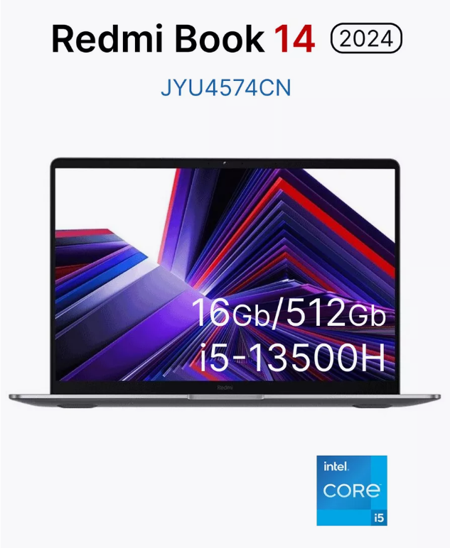 Сохранить14" Ноутбук Xiaomi Redmi Book 14 (2024), 2880x1800, Intel Core i5-13500H, Iris Xe Graphics, 16/512 ГБ, Windows 11 Home (RU), серый, русская клавиатура интересное: