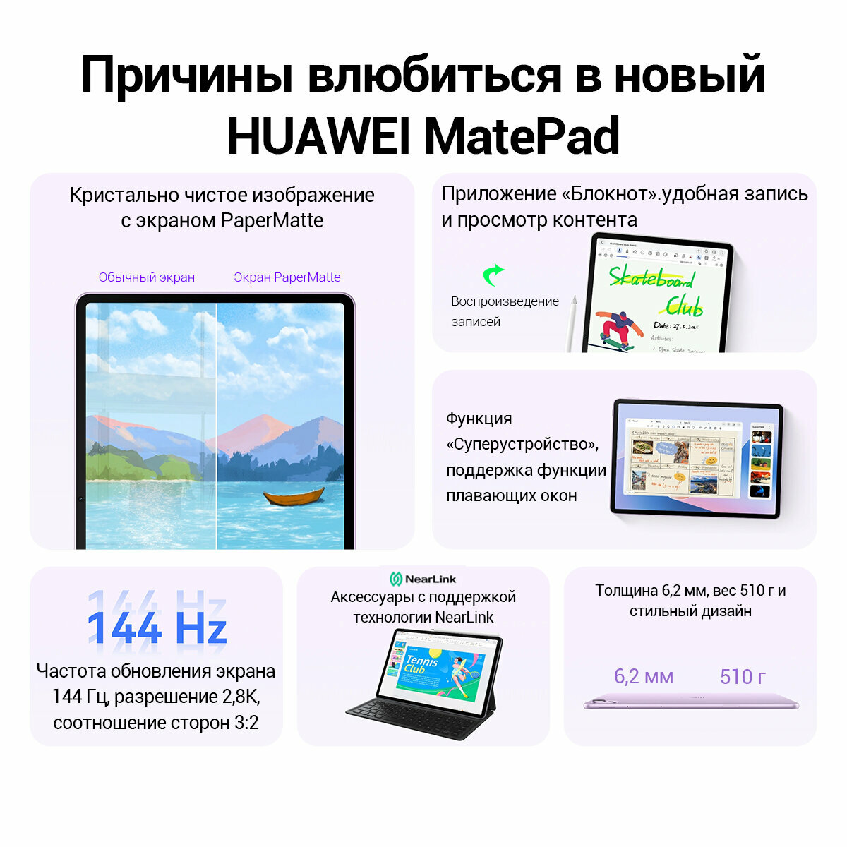 Планшет HUAWEI MatePad 11.5S 8/256GB PaperMatte WiFi+KB (53014ATJ), Сиреневый