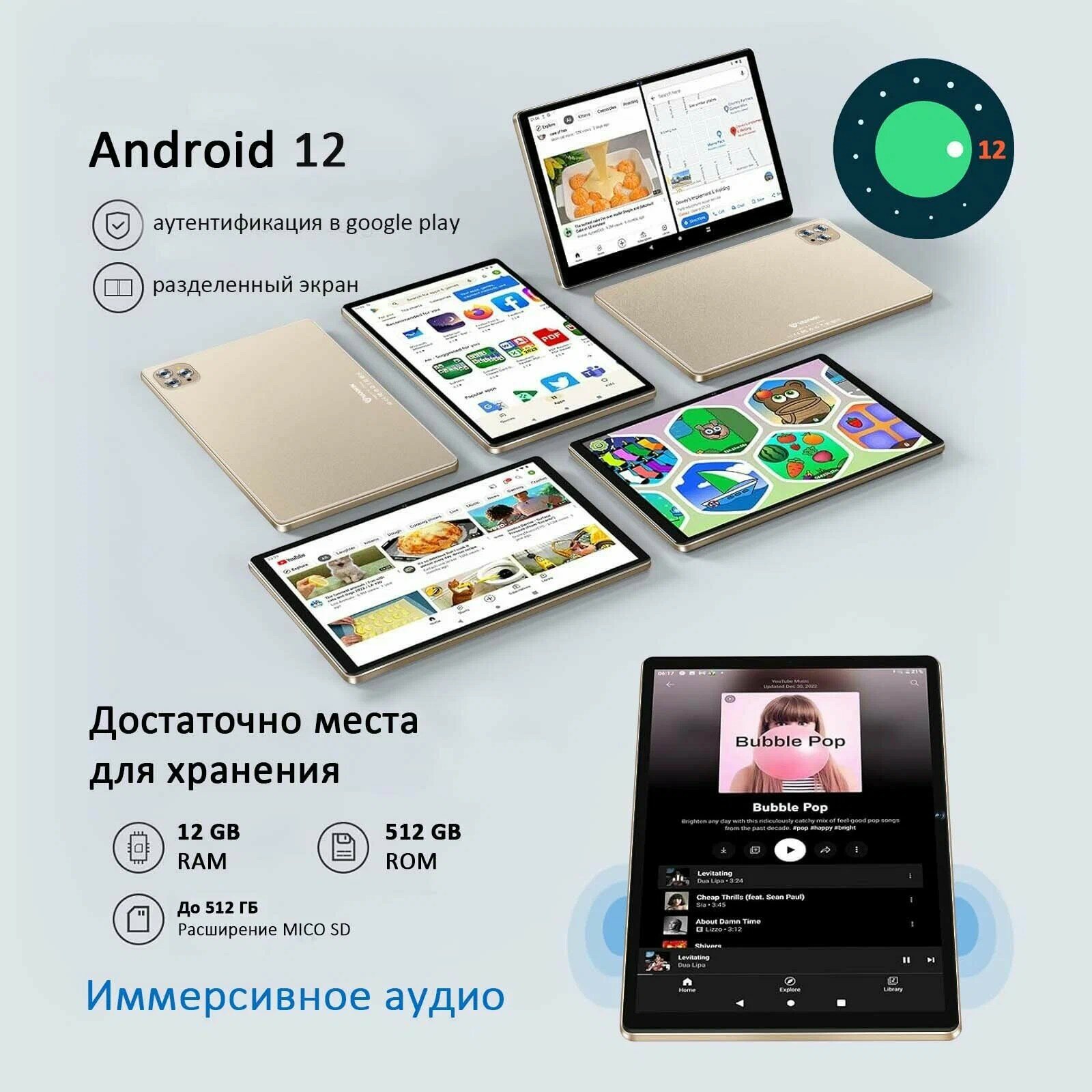 Планшетный ПК с русской клавиатурой 4G+2SIM 12ГБ+512ГБ просмотр видео праздничные подарки интересное:
