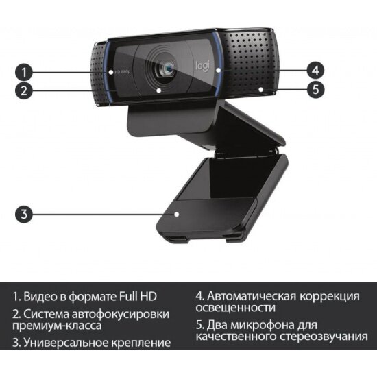 Веб камера Logitech C920 HD Pro, черный интересное:
