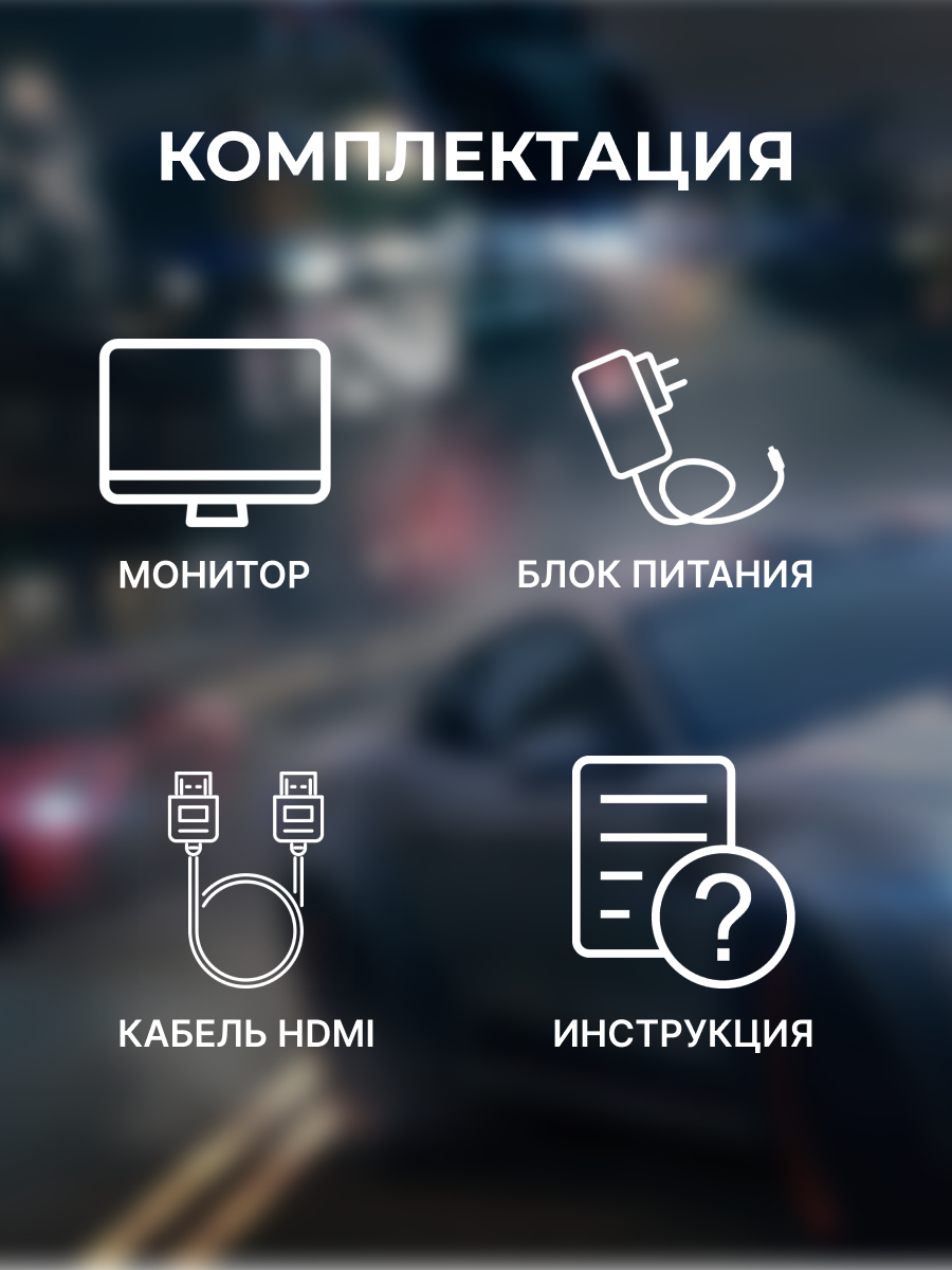 | Подробная комплектация | Монитор, База, Кронштейн, Отвертка, Руководство пользователя , Базовый винт х2, HDMI-кабель, Адаптер питания |
