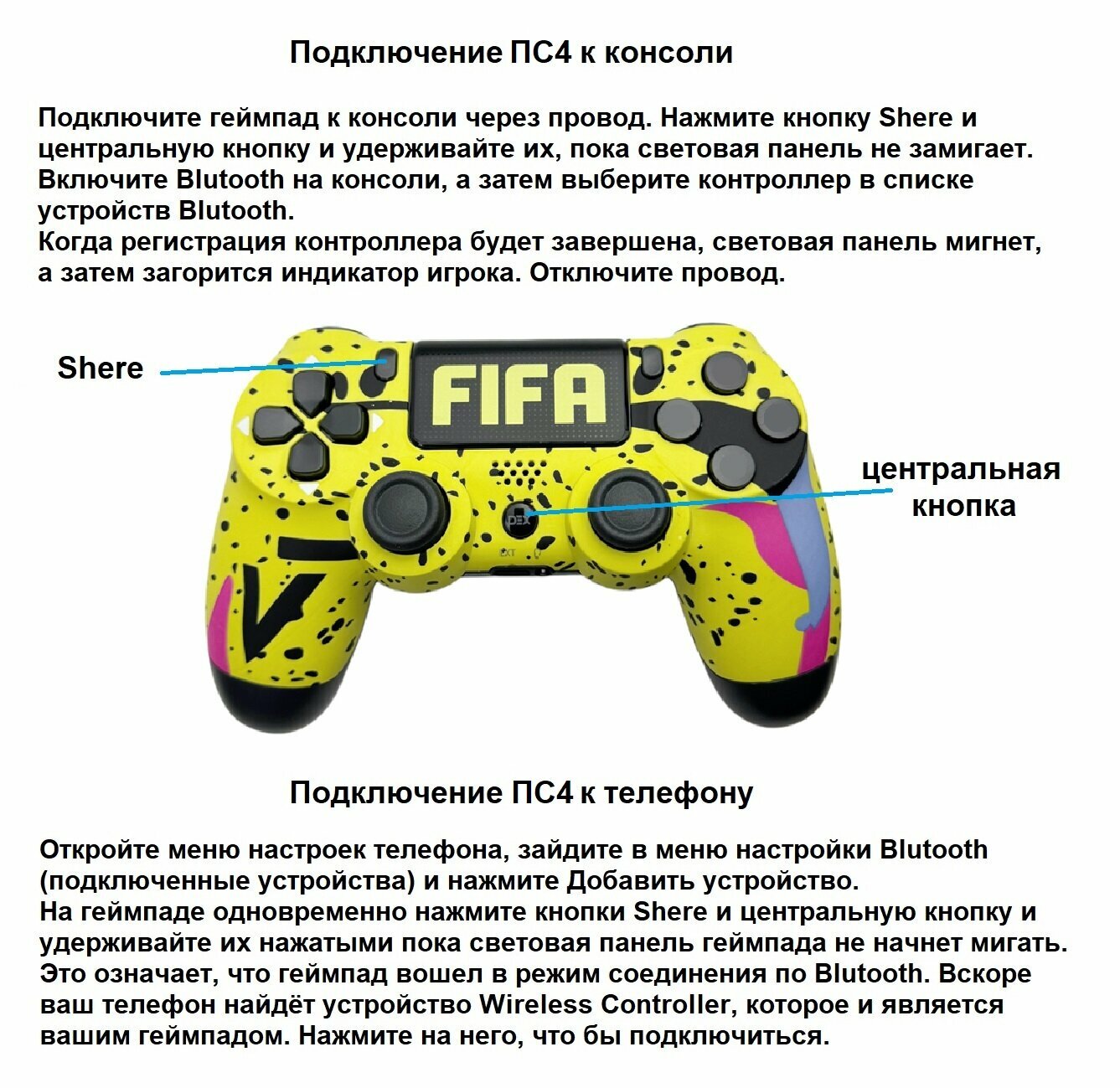 Геймпад/Джойстик/Контроллер беспроводной для консоли/приставки ПС4 и ПК FIFA желтый интересное: