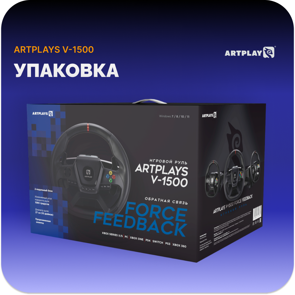 Купить Руль Artplays V-1500 Force Feedback для PC, Xbox Series X/S. PlayStation 4, Xbox One