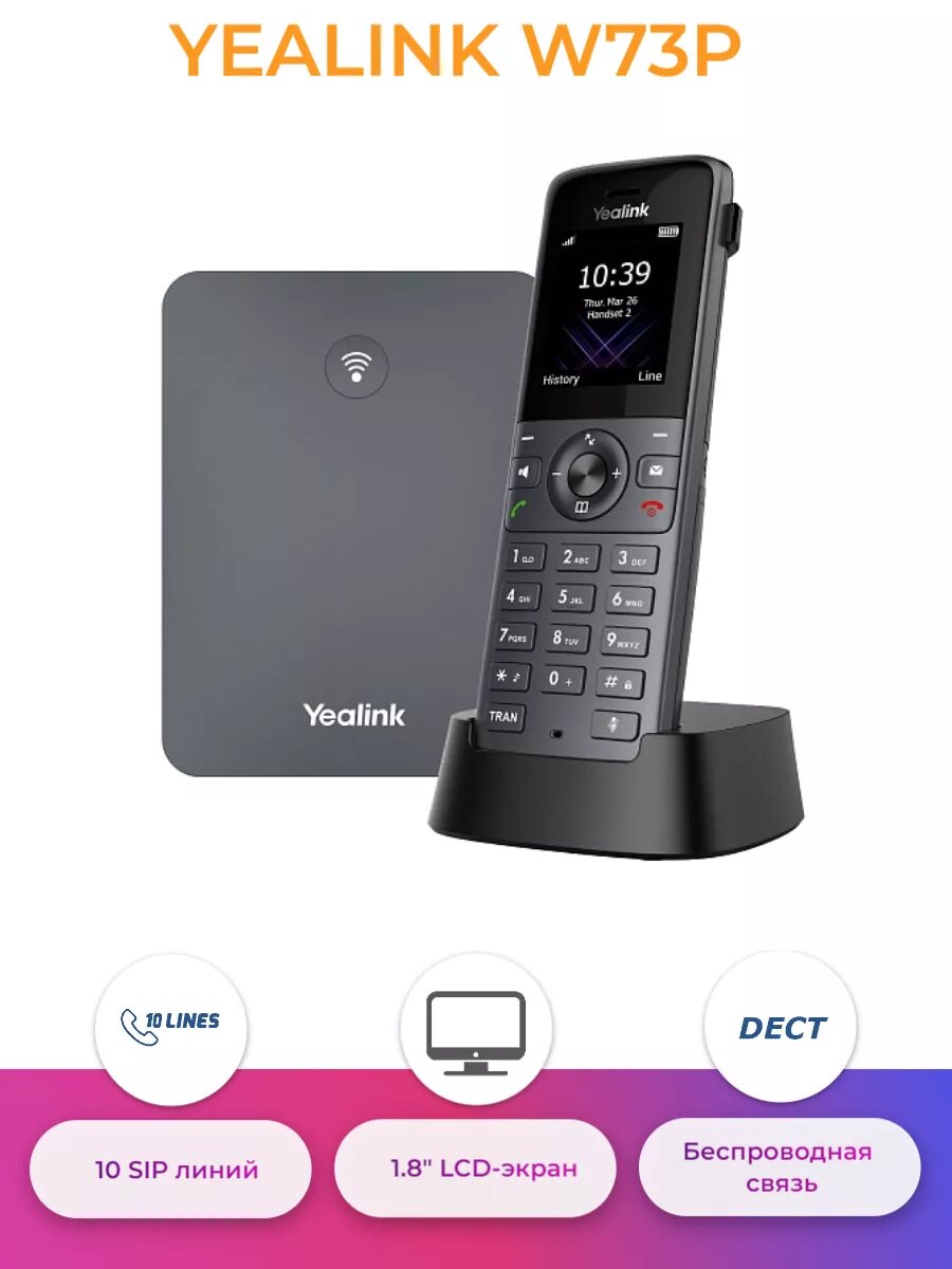 Yealink VoIP-телефон W73P DECT-трубка база W70B + трубка W73H до 10 SIP - аккаунтов, до 10 трубок на базу, до 20 одноврем. Вызовов интересное: