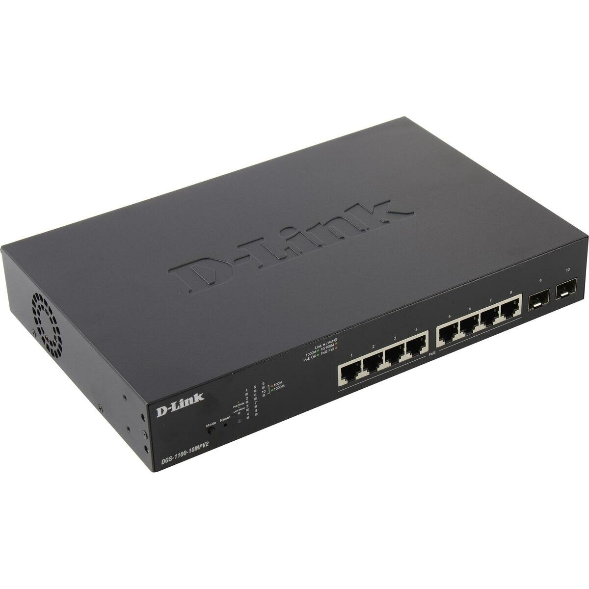 Коммутатор D-Link DGS-1100-10MPV2/A3A 10 портов (8x 1Gbs PoE, 2x 1Gbs SFP, настраиваемый L2) (DGS-1100-10MPV2/A3A)